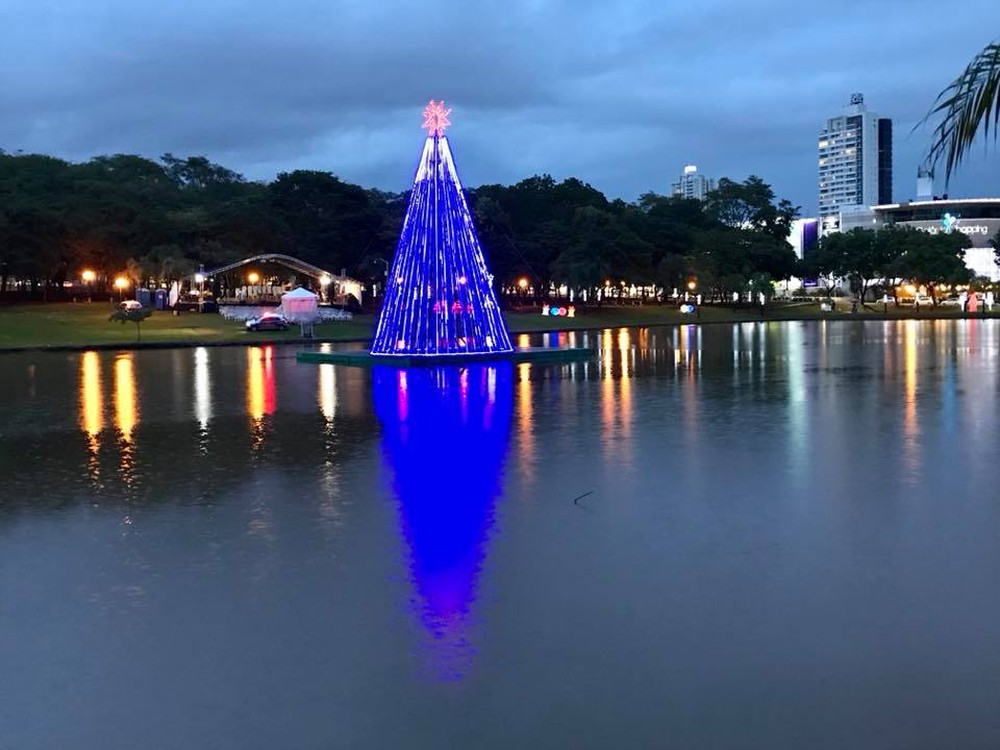 Foram utilizadas 60 mil garrafas plásticas para construir a decoração de natal. Ela fica no meio do lago do parque. Uma base flutuante, formada por 60 tambores de 50 litros, dá sustentação à estrutura. A árvore é coberta de luzes, com alcance de 100 metros de luminosidade.