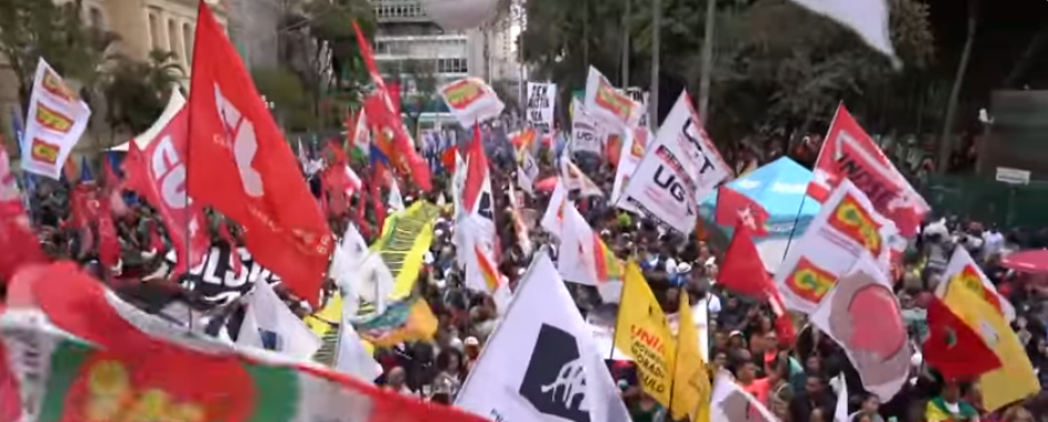 Manifestação de movimentos sociais, sindicatos e partidos de esquerda se reuniu na Praça da República, no centro de São Paulo