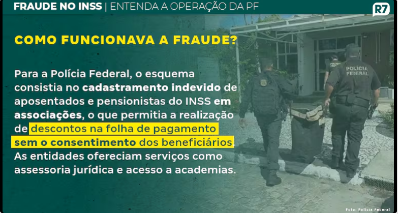 De acordo com investigação, de 2019 a 2024, aposentados e pensionistas do INSS foram vítimas de associações e sindicatos, que os incluíram como associados sem consentimento e descontaram valores de seus benefícios. O prejuízo foi estimado em R$ 6,3 bilhões de reais.