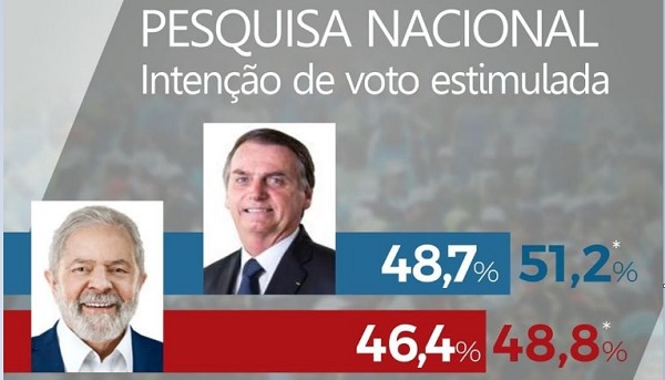 A margem de erro da pesquisa é de 2 pontos percentuais para mais ou para menos. A pesquisa foi realizada entre os dias 11 e 15 de outubro e ouviu 5.528 eleitores. O nível de confiança é 95%. O registro no Tribunal Superior Eleitoral é BR-04850/2022.