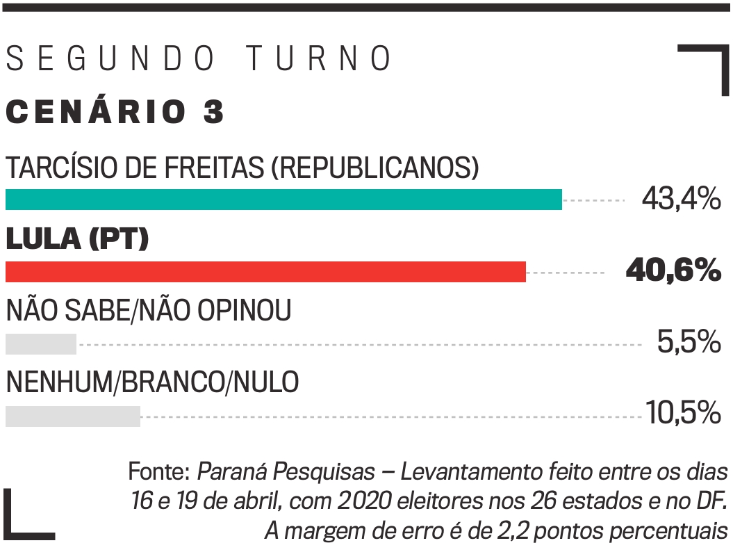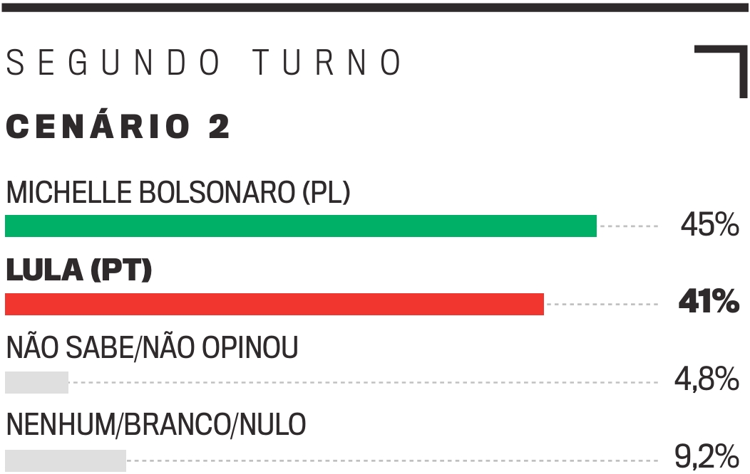 Lula teria dificuldades contra Bolsonaro, Michelle ou Tarcísio em um eventual segundo turno