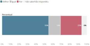 Pesquisa Ipec divulgada nesta segunda-feira (16/01) aponta que 55% dos brasileiros acreditam que o governo do presidente Luis Inácio Lula da Silva (PT) será melhor que o de Jair Messias Bolsonaro (PL). Já para 25% a gestão do petista será pior que a do ex-presidente.