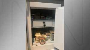 Cofre aberto no Maranhão durante nova fase da Operação Sem Desconto nesta quinta-feira (13). Foto: Polícia Federal/Divulgação