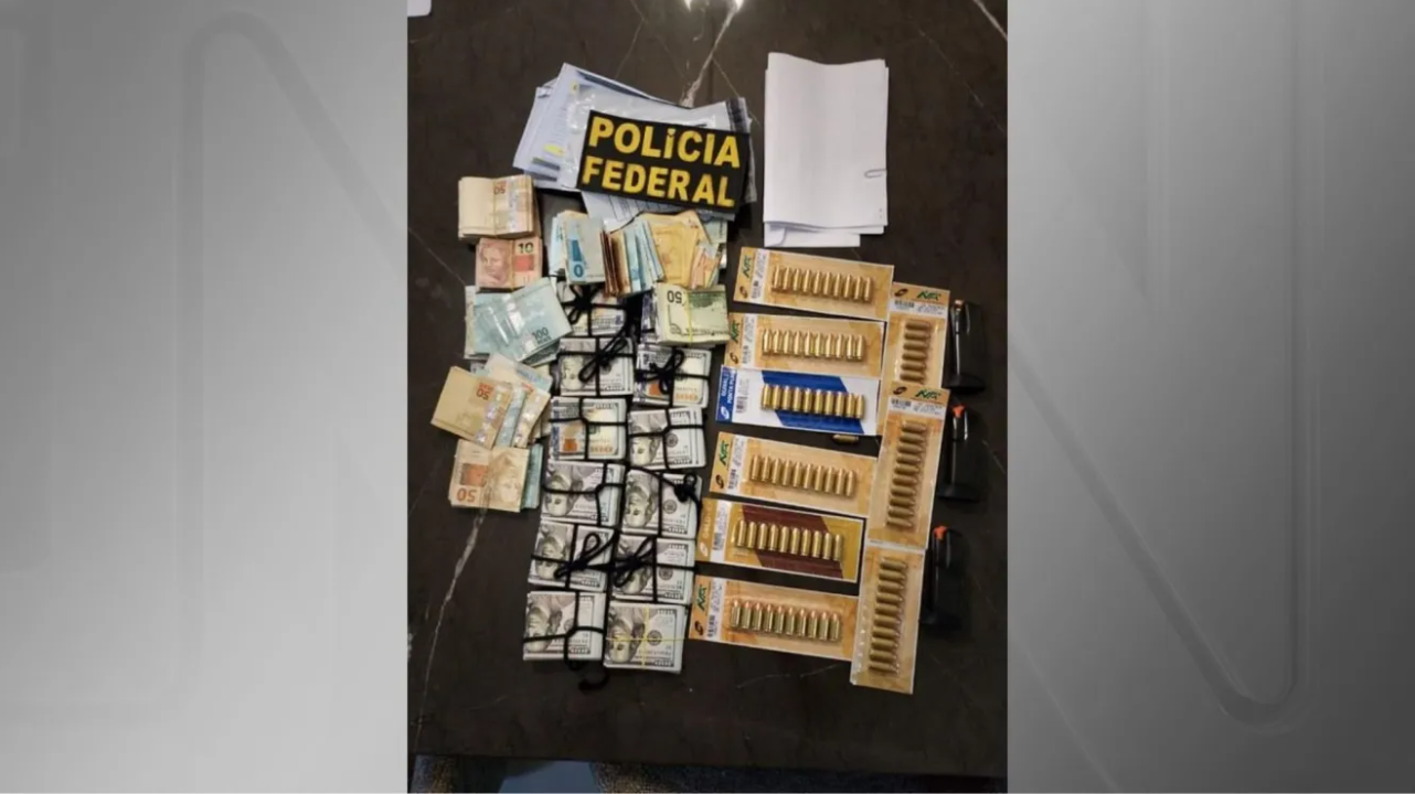 - Em Minas Gerais, foram confiscados maços com notas de R$ 10, R$ 50, R$ 100, além de dólares, munições e carregadores para armas de fogo.