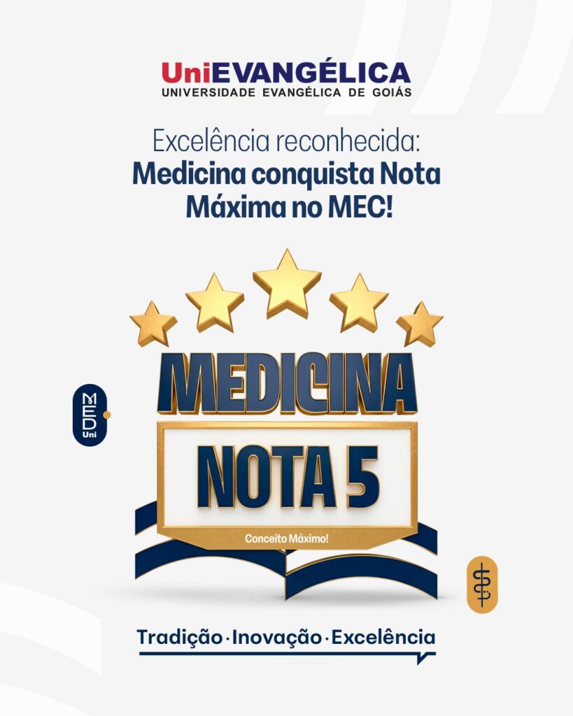 O curso de Medicina da Universidade Evangélica de Goiás – UniEVANGÉLICA – acaba de alcançar um marco importante em sua trajetória: conquistou nota 5 no Conceito de Curso (CC), avaliação presencial realizada por técnicos do Ministério da Educação (MEC). O resultado consolida a instituição como referência nacional em excelência acadêmica, inovação pedagógica e compromisso social.