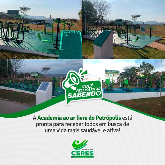 A Prefeitura Municipal de Ceres acaba de inaugurar nova academia ao ar livre do Setor Jardim Petrópolis, que oferece equipamentos e um ambiente propício para a prática de atividades físicas ao ar livre.