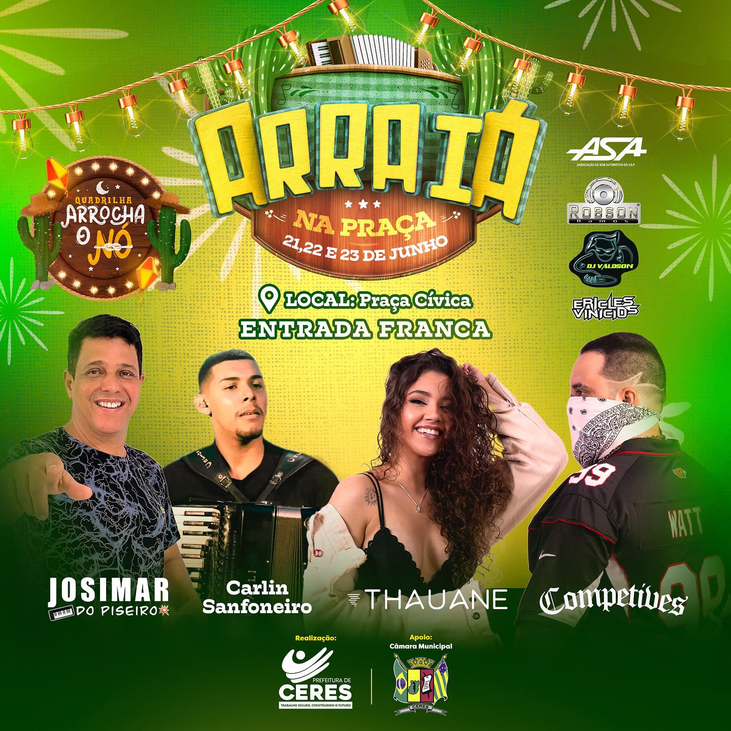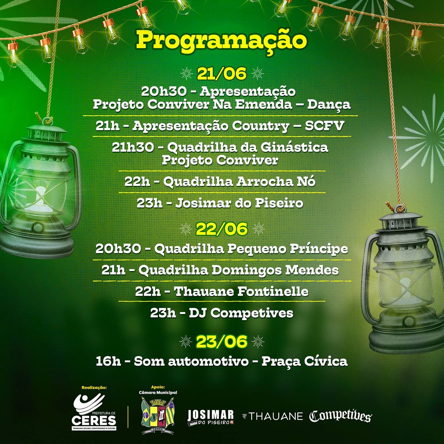 Nos dias 21, 22 e 23 de junho, prepare-se para muita dança, quadrilha e shows imperdíveis que vão agitar a cidade de Ceres.