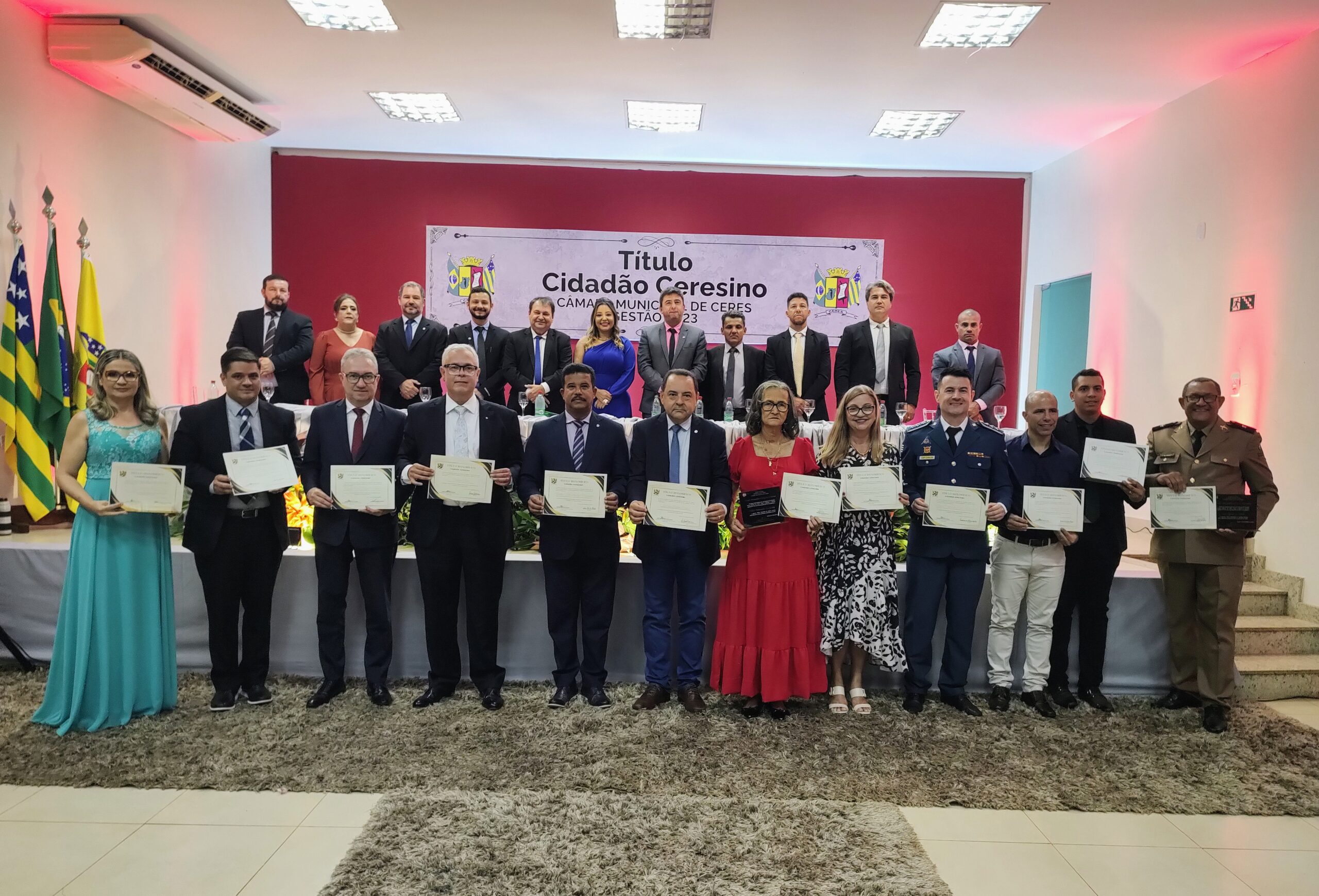 Na última terça-feira, dia 12 de dezembro de 2023, sob a presidência da vereadora Simone Rosa de Oliveira, foi realizada a solenidade de entrega de título Honorífico de cidadão (a) ceresino (a), conforme disposto no artigo 20 da Lei Orgânica do município de Ceres-GO.