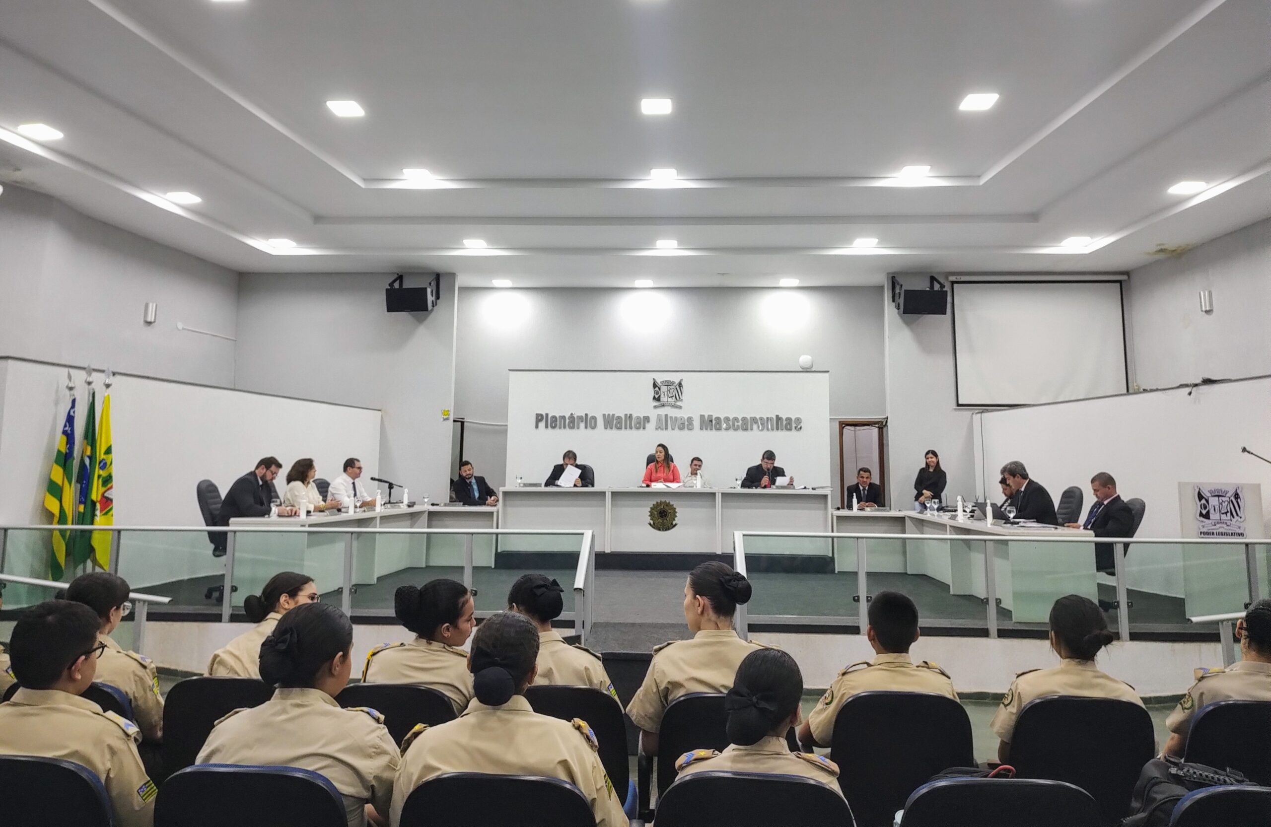 Os alunos do oitavo ano do Colégio da Polícia Militar do Estado de Goiás – Hélio Veloso, de Ceres-GO, vieram visitar o plenário da Câmara para acompanhar e aprender como é a rotina de uma Sessão e fizeram uma breve apresentação.