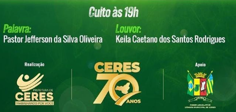 A cidade de Ceres comemora, no próximo dia 4 de setembro, 70 Anos de emancipação política. Para celebrar a data, a cidade irá promover diversos eventos, incluindo shows musicais com artistas renomados.