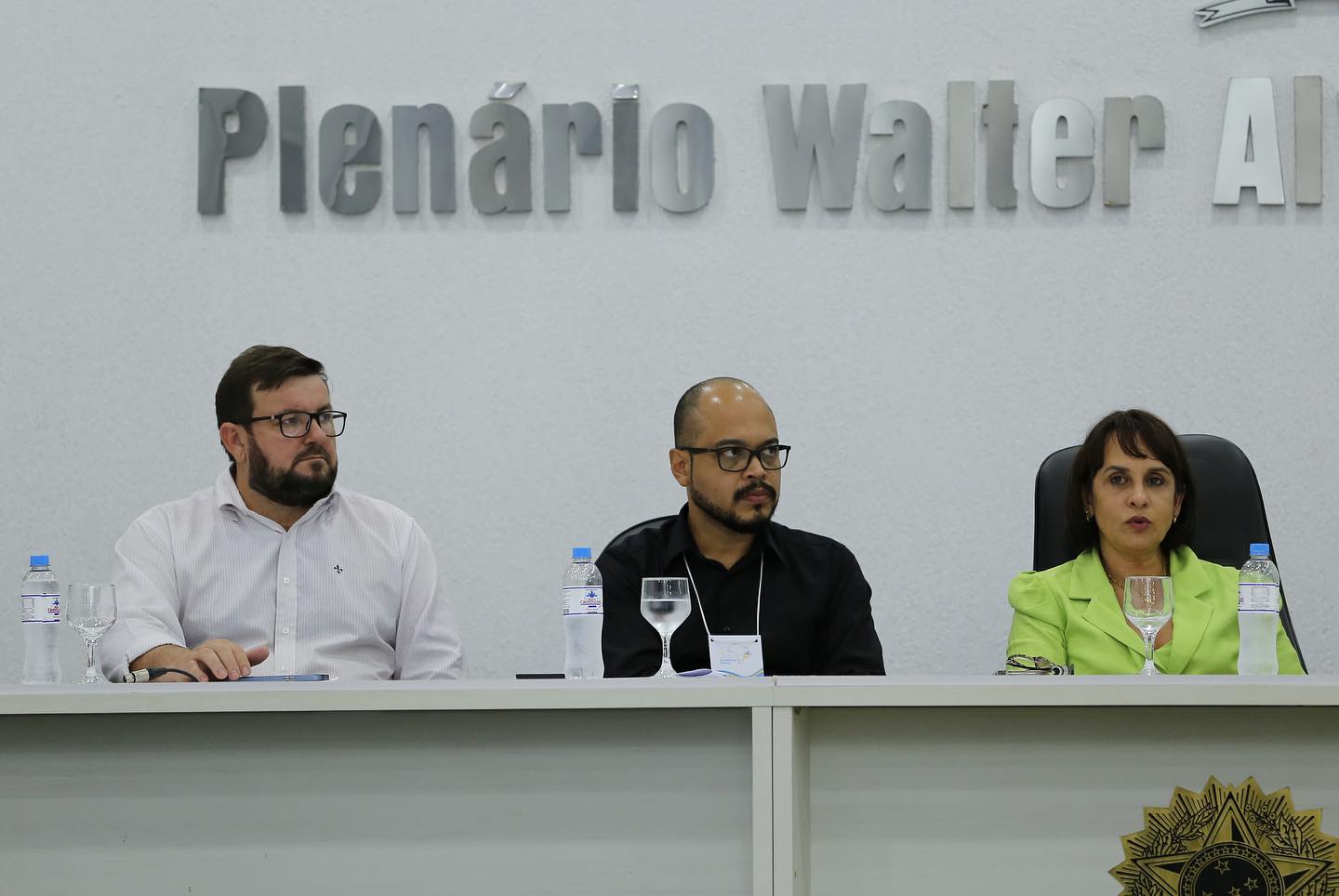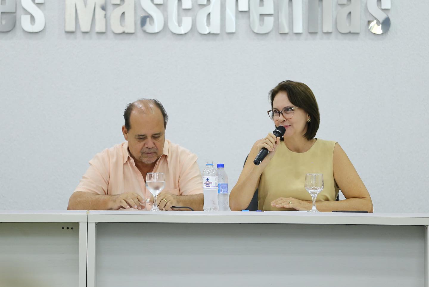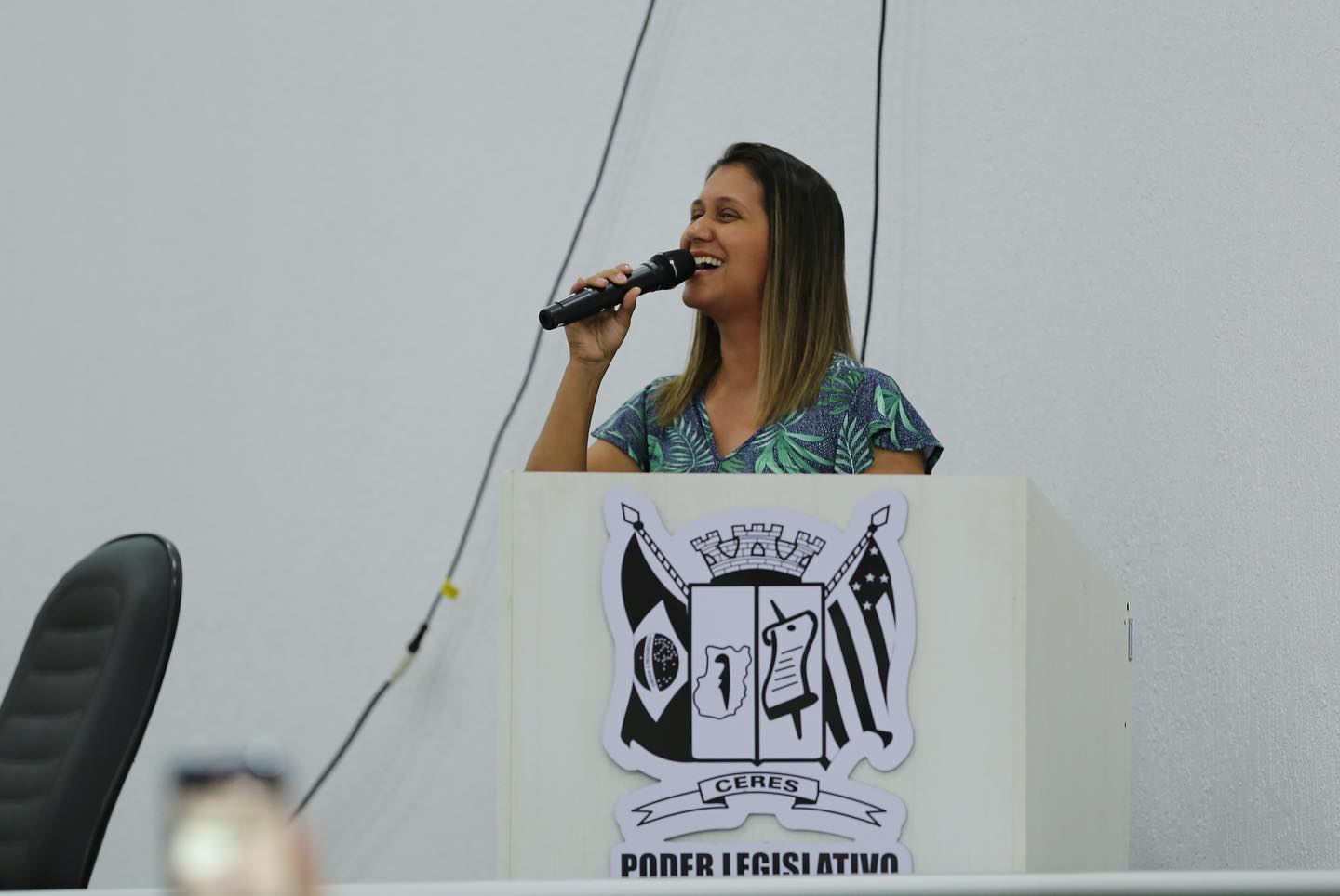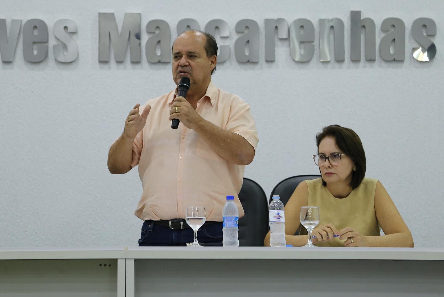 Primeira-dama de Ceres Lucelma dicursando ao lado do prefeito Edmário, durante abertura da 14ª Conferência Municipal de Assistência Social. Fotos: Comunicação/Prefeitura de Ceres