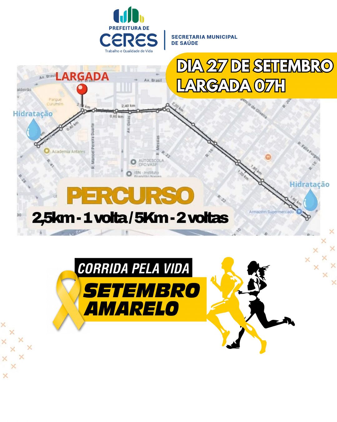 A entrega dos kits da Corrida pela Vida será nesta sexta-feira, na Academia da Saúde, das 18h às 19h.