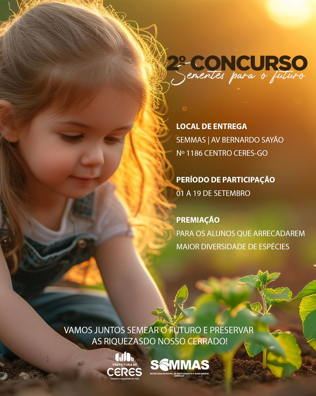 Em comemoração ao Dia da Árvore (21/09), a Prefeitura de Ceres, por meio da SEMMAS, lança a segunda edição do concurso “Sementes Para o Futuro”.