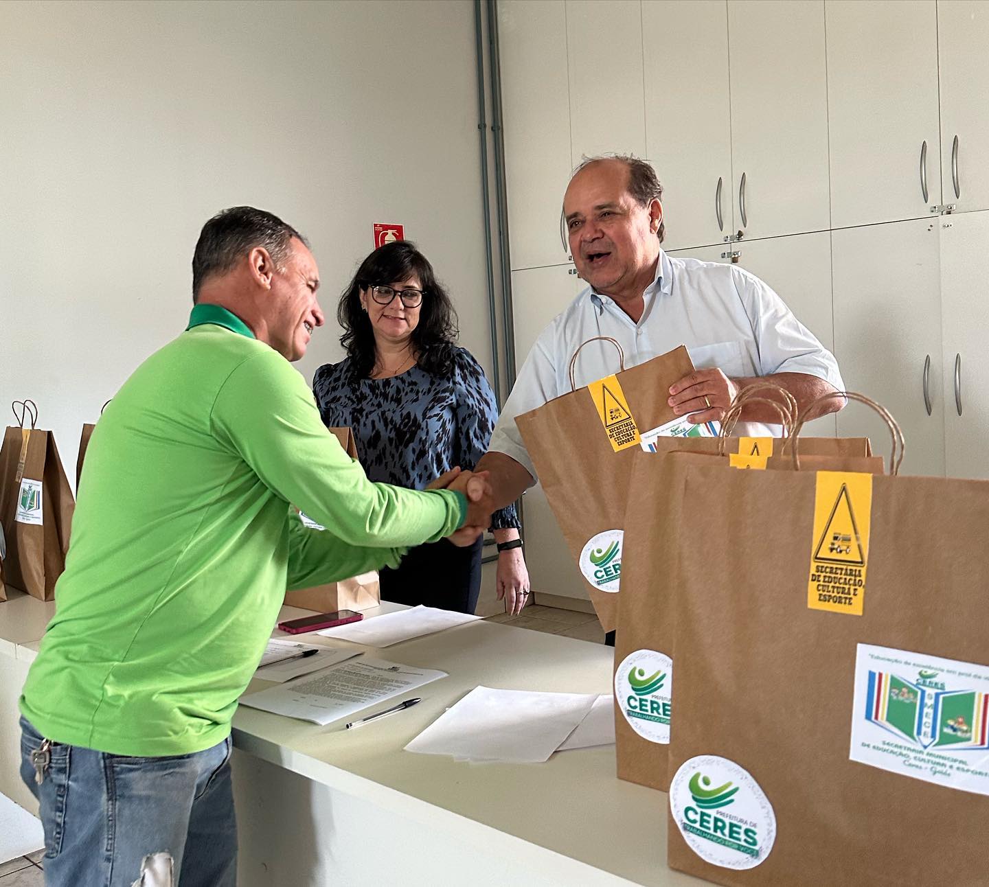 A Prefeitura de Ceres, através da Secretaria Municipal de Educação fez, recentemente a entrega de mais um kit de uniformes e equipamentos de segurança para motoristas da Educação. ‘Queremos o melhor para os nossos profissionais, por isso que estamos sempre buscando investimentos que promovam uma melhor condição de trabalho e de vida para cada colaborador”, disse o Prefeito Edmario de Castro Barbosa ao destacar o papel fundamental de cada colaborador da prefeitura.
