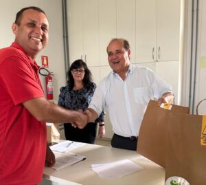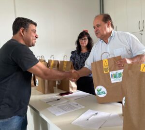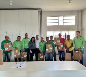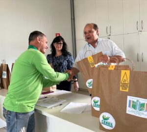 Cada profissional recebeu dois kits para o bom exercício da profissão. Os kits são compostos por camisa, calça, óculos de proteção, par de luvas, e plug de segurança.