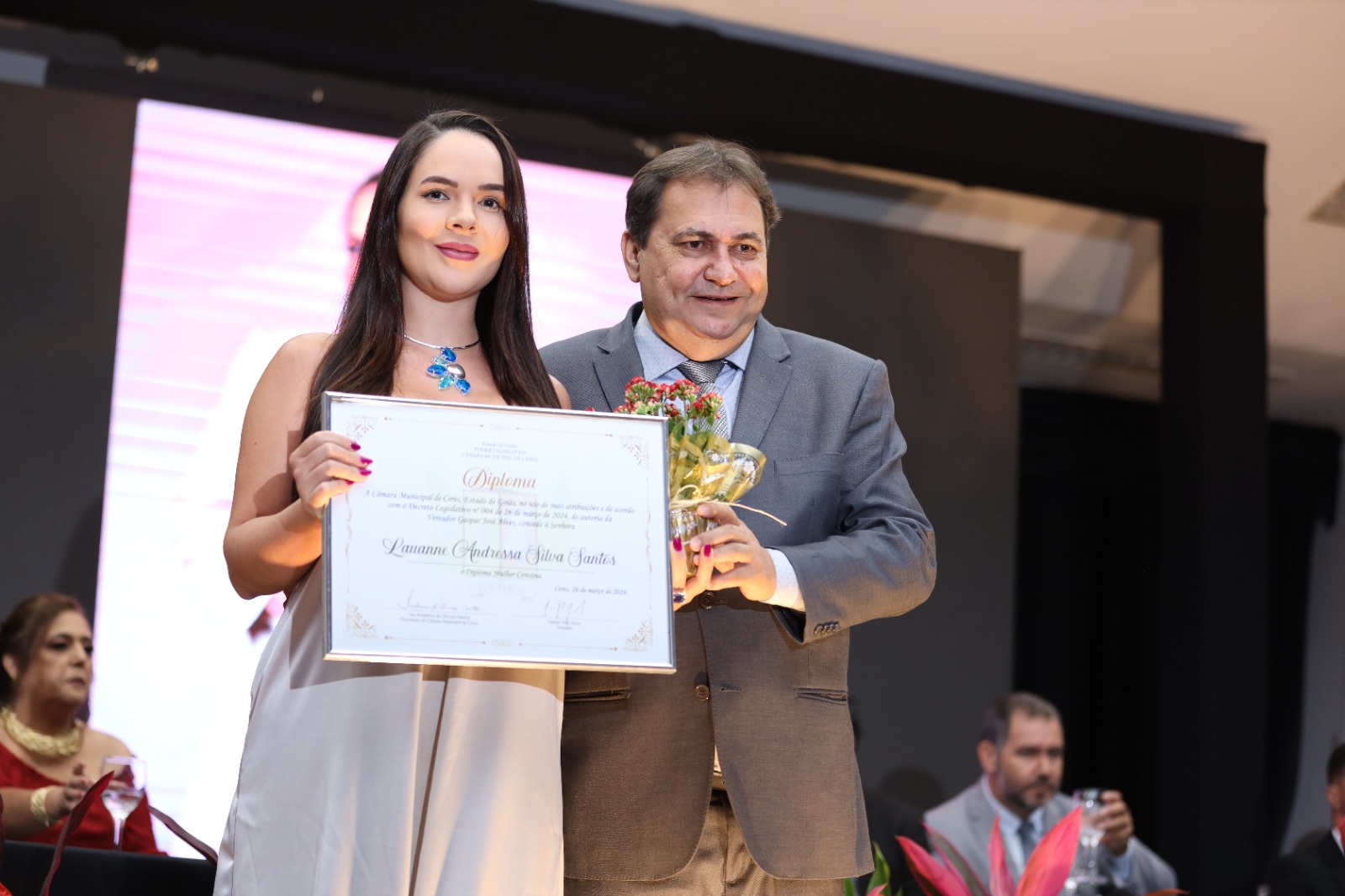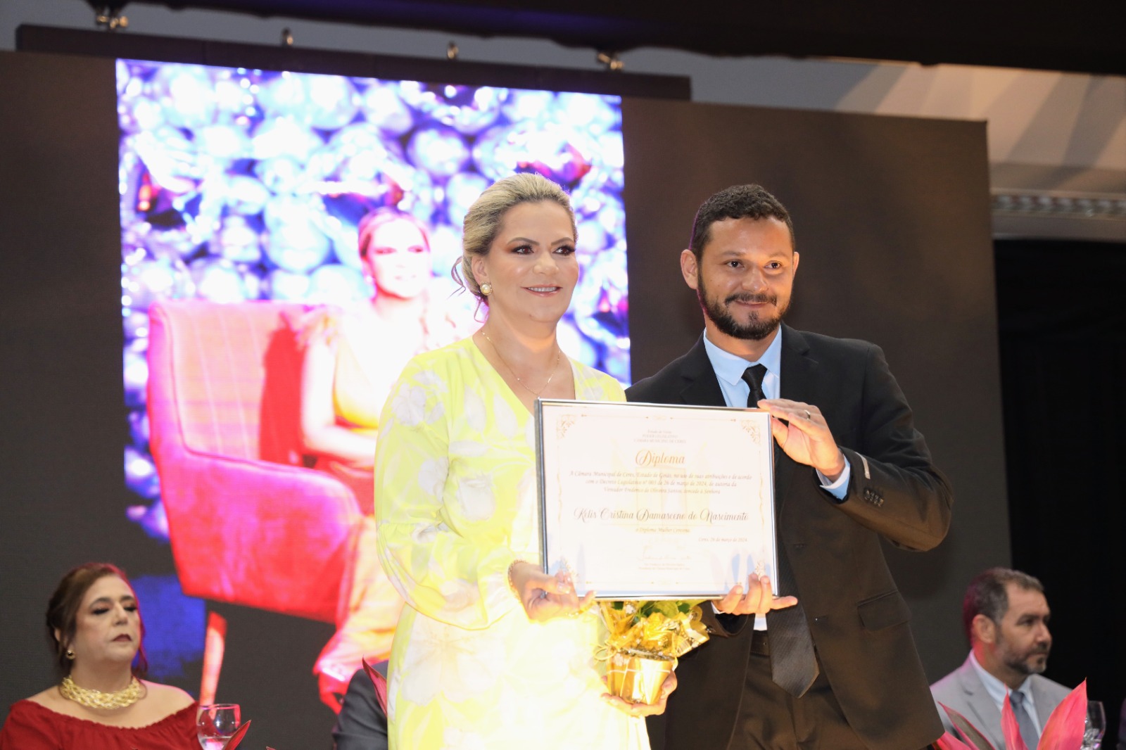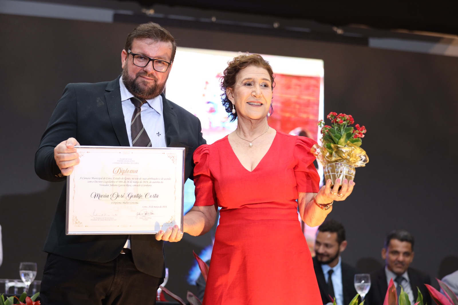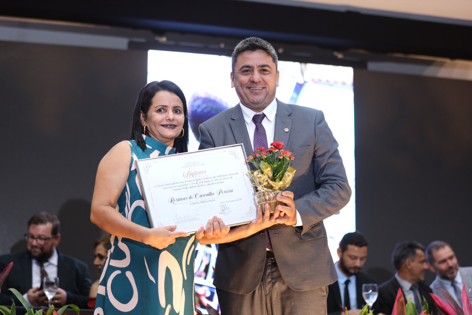 Como parte de suas atribuições, os vereadores não apenas propõem leis e fiscalizam as ações do Executivo Municipal, mas também têm o dever de reconhecer aqueles que efetivamente contribuem para o crescimento e prestígio de nosso município. Assim, surgem as honrarias da Câmara Municipal de Ceres, como o Diploma Mulher Ceresina, instituído pelo Decreto Legislativo nº 001/2010. Esse diploma visa homenagear mulheres notáveis que deixaram sua marca no engrandecimento da nossa querida comunidade ceresina, atuando em diversas áreas de atividade. O Projeto de Decreto Legislativo referente ao Diploma Mulher Ceresina foi apresentado pelo vereador autor, indicando cada homenageada, e a Câmara Municipal de Ceres votou e aprovou a concessão dessa distinta honraria.