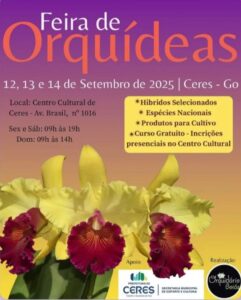 O município de Ceres recebe, entre os dias 12 e 14 de setembro, a tradicional Feira de Orquídeas, que será realizada no Centro Cultural, localizado na Avenida Brasil. O evento é uma oportunidade para admiradores e colecionadores conhecerem de perto diferentes variedades da planta.