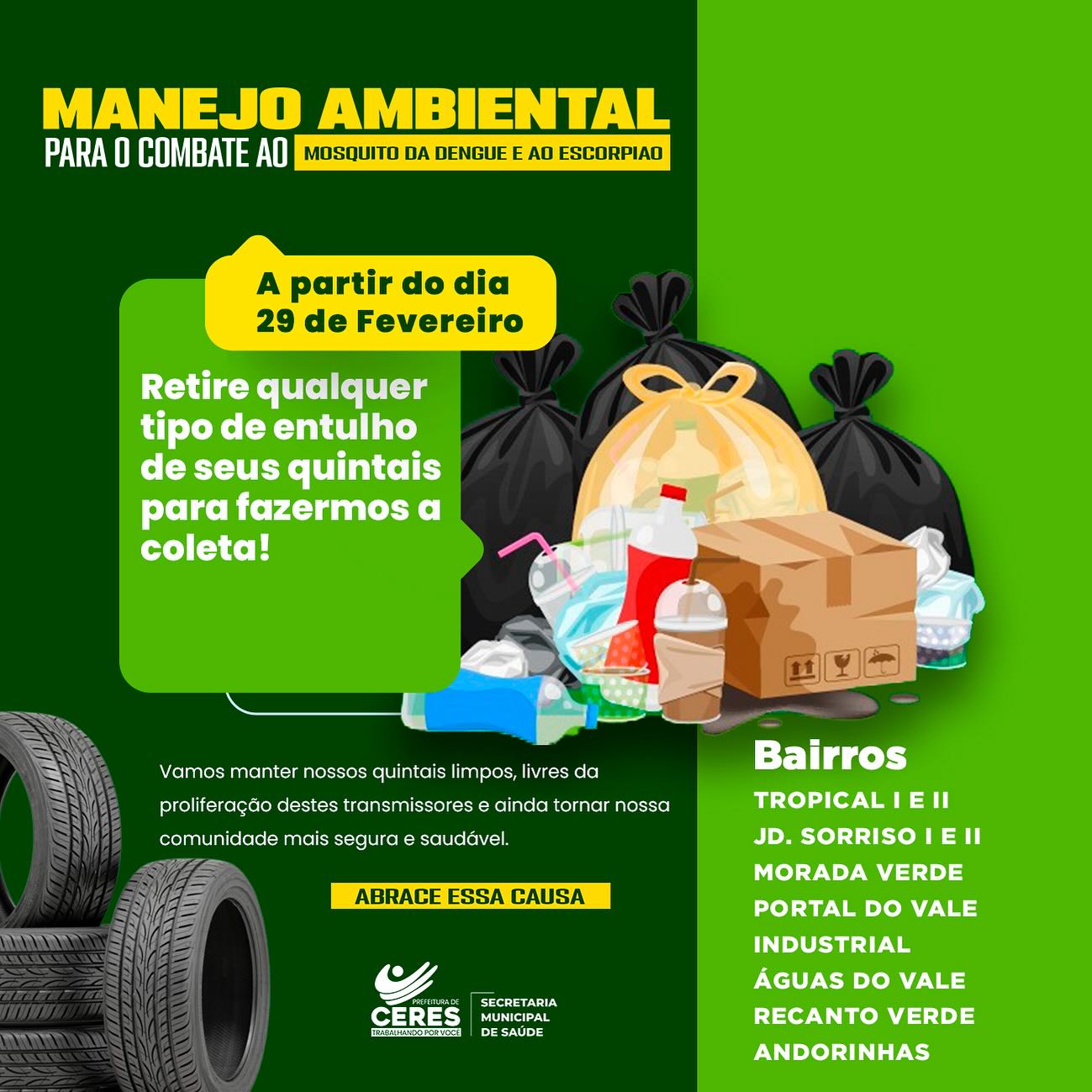 A Prefeitura de Ceres, por meio da Secretaria de Saúde e da Secretaria de Serviços Urbanos, tem uma mensagem importante para vocês!