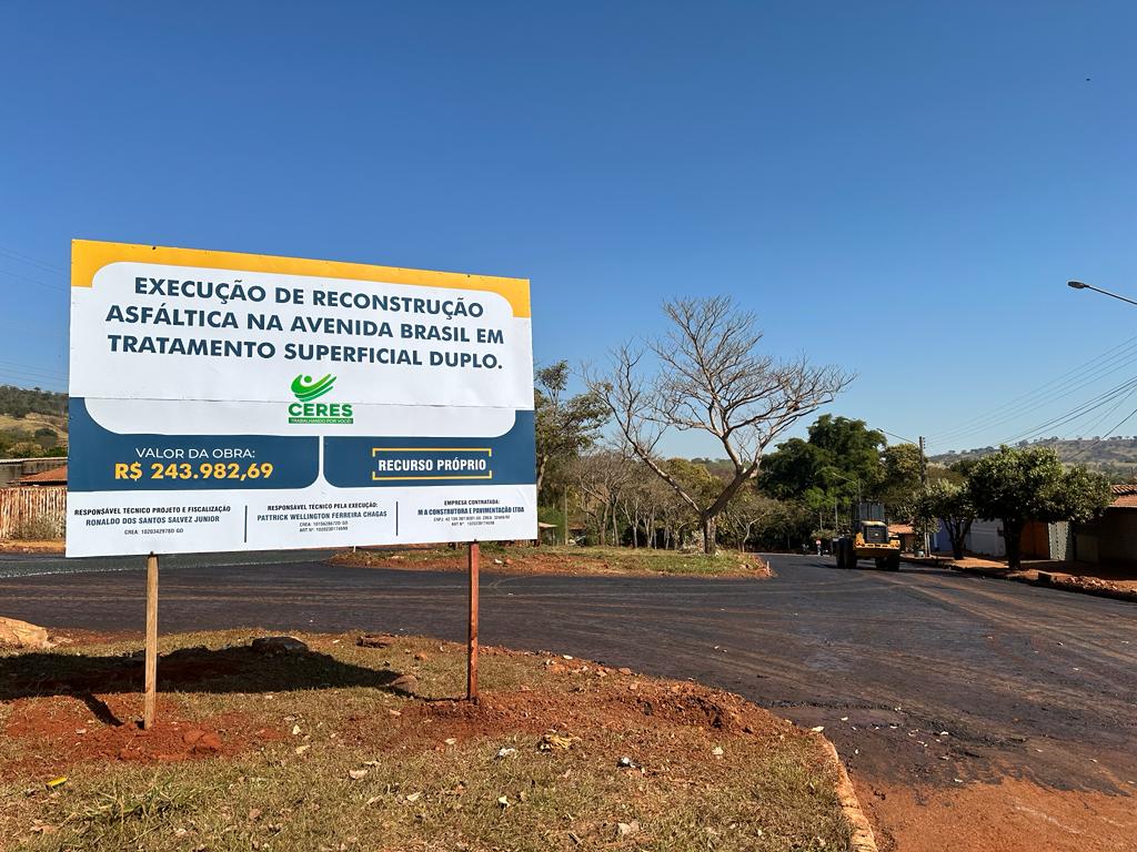 A Prefeitura de Ceres, através da Secretaria Municipal de Obras, finalizou na semana passada mais uma frente de trabalho, com a pavimentação asfáltica de parte da Avenida Brasil, que é uma das principais vias da cidade.