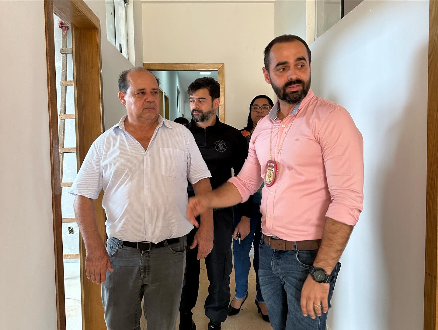 Acompanharam Prefeito Edmario, Dr. Matheus Melo, Delegado Regional da Polícia Civil; Dr. Nelinho José de Almeida, Delegado do município de Ceres; Anderson Oliveira, Diretor da Unidade Prisional de Ceres; Tatiane Cristina da Silva, Secretaria de Obras e Desenvolvimento Urbano e Dyb Bittar, Secretário de Administração.