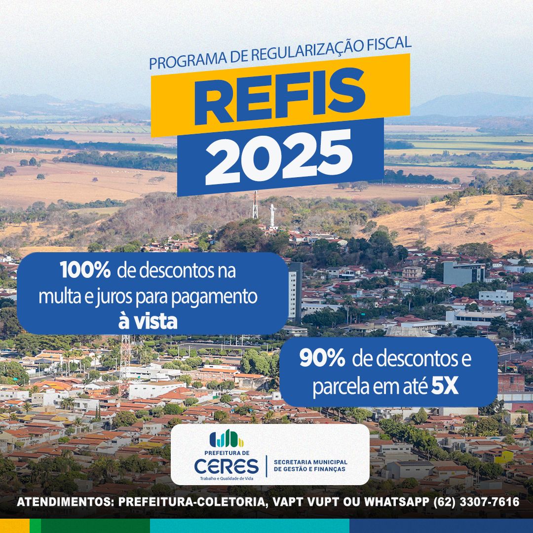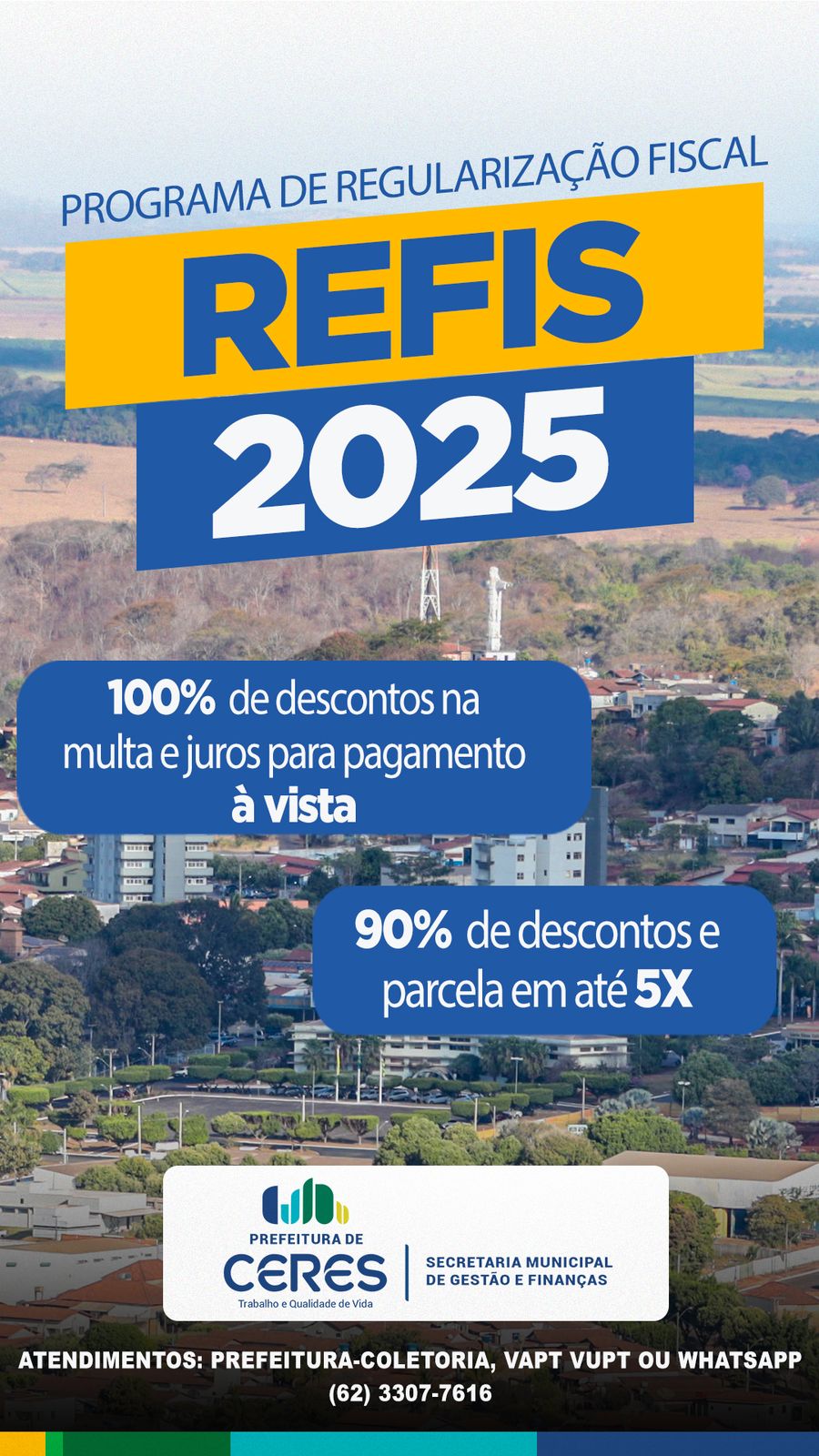 Informamos que, a partir do dia 20 de março, terá início o REFIS 2025, um programa de recuperação fiscal que oferece condições facilitadas para o pagamento de dívidas com o município.