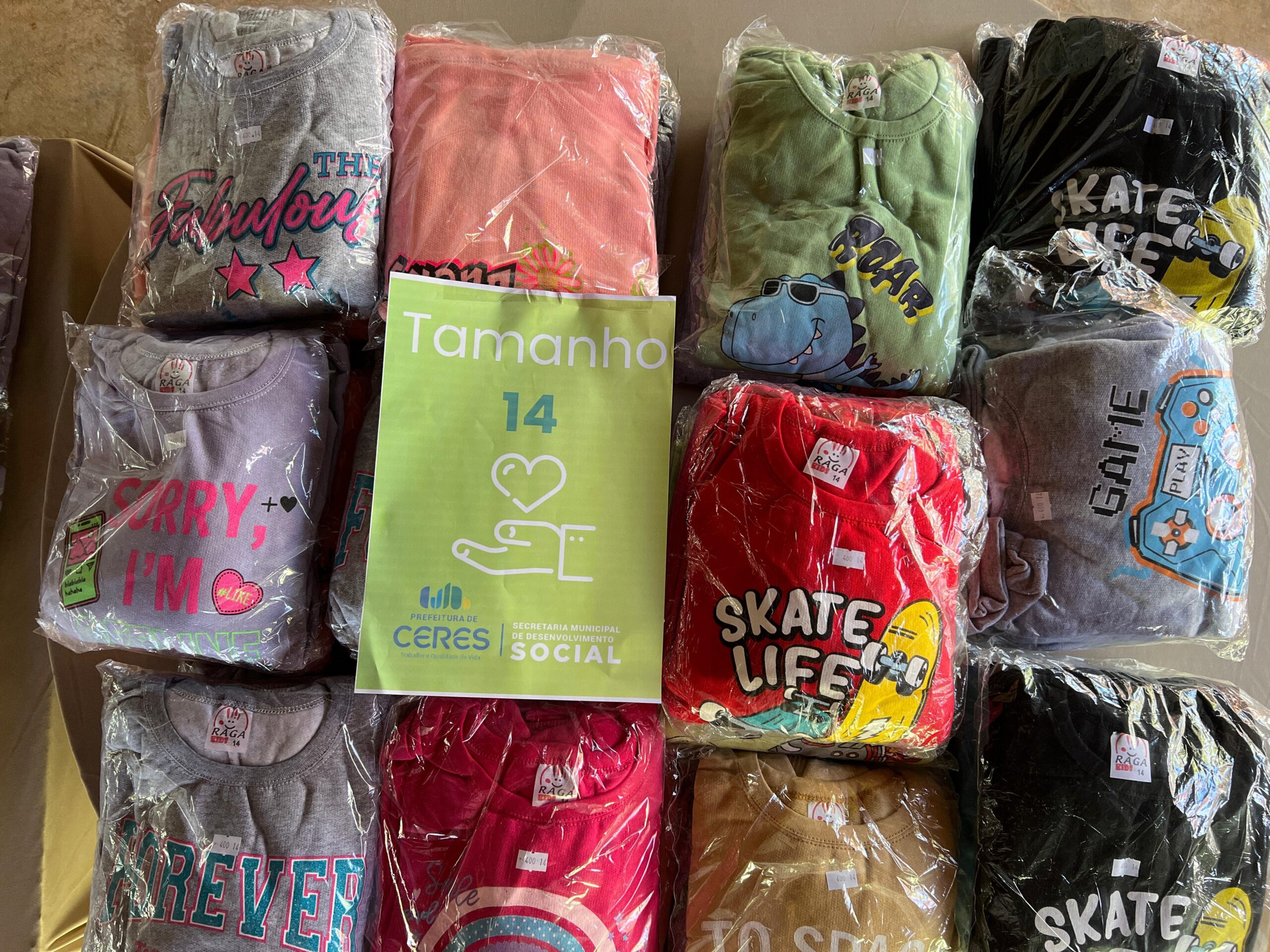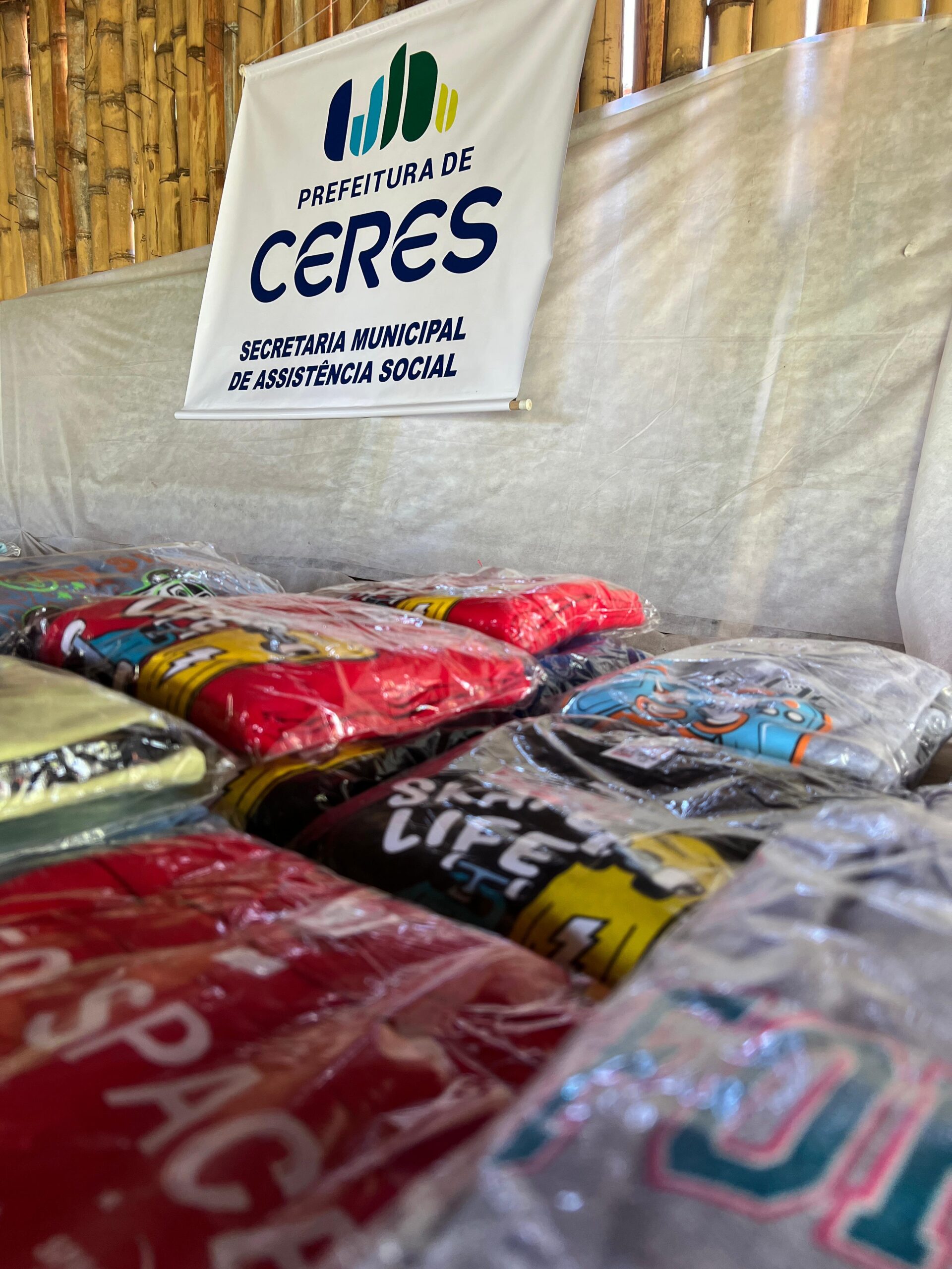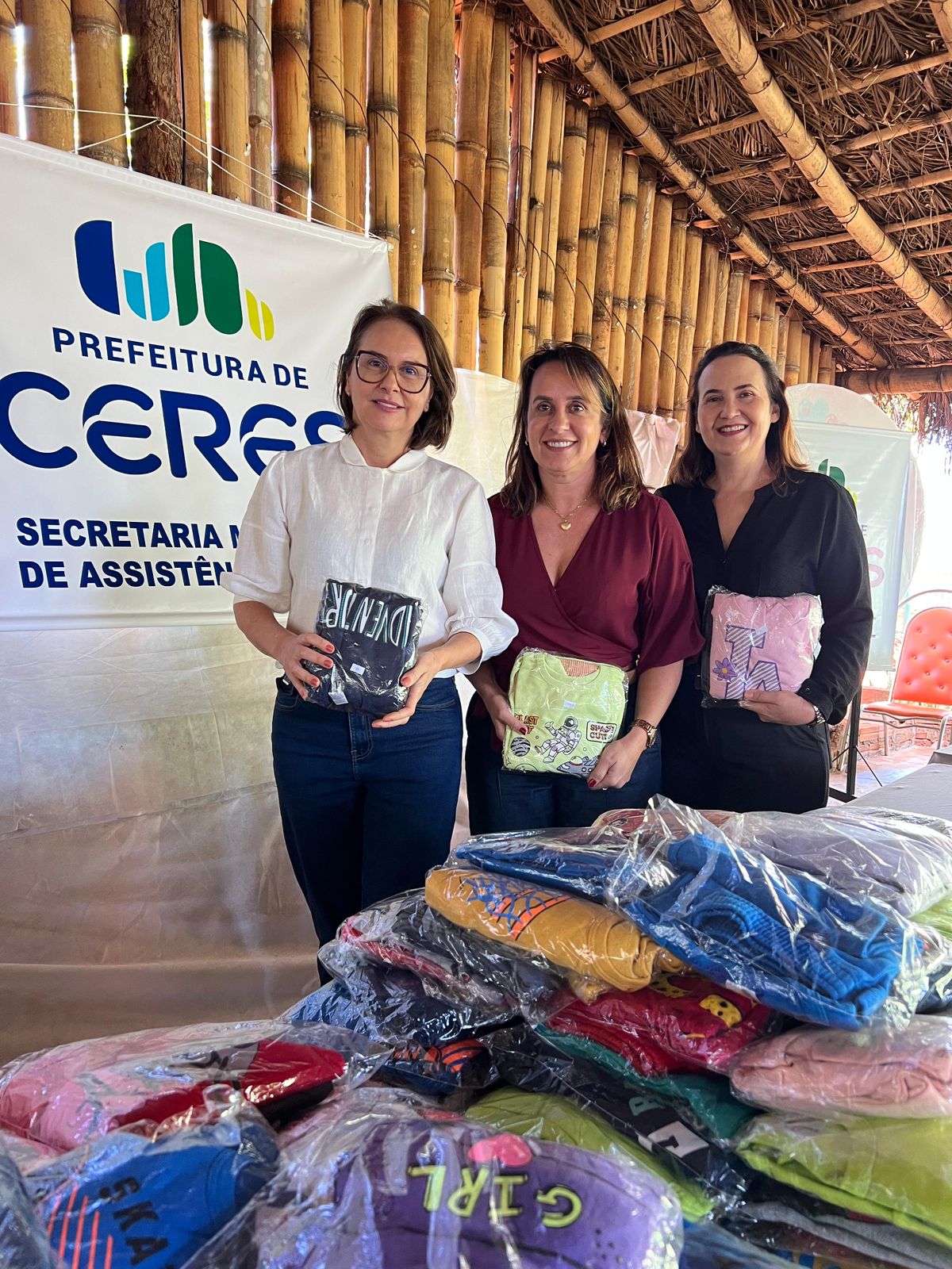 A Secretaria Municipal de Assistência Social de Ceres realizou a entrega de agasalhos às crianças atendidas pelos programas sociais do nosso município. A entrega contou com a presença da primeira-dama do município Lucelma Leão.