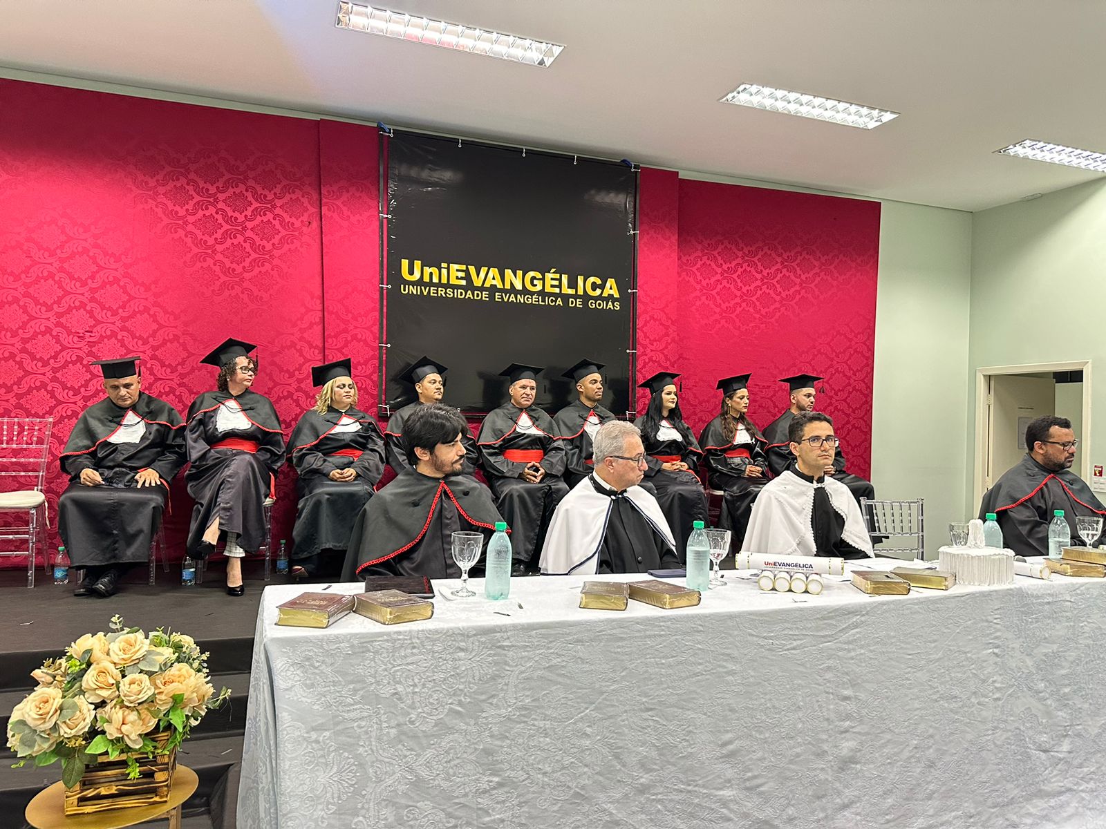 No último dia 09 de fevereiro de 2024, a Universidade Evangélica de Goiás – UniEVANGÉLICA, Campus Ceres, celebrou a colação de grau unificada para todos os cursos oferecidos pela instituição. O evento contou com a participação do Reitor da UniEVANGÉLICA, Carlos Hassel Mendes, do diretor do Campus, Guilherme Soares Vieira, bem como dos coordenadores dos cursos. A Coordenadora de Extensão, Doraci Maria dos Santos Trindade e a Coordenadora de Pesquisa, Suelen Marçal Nogueira, também estiveram presentes.