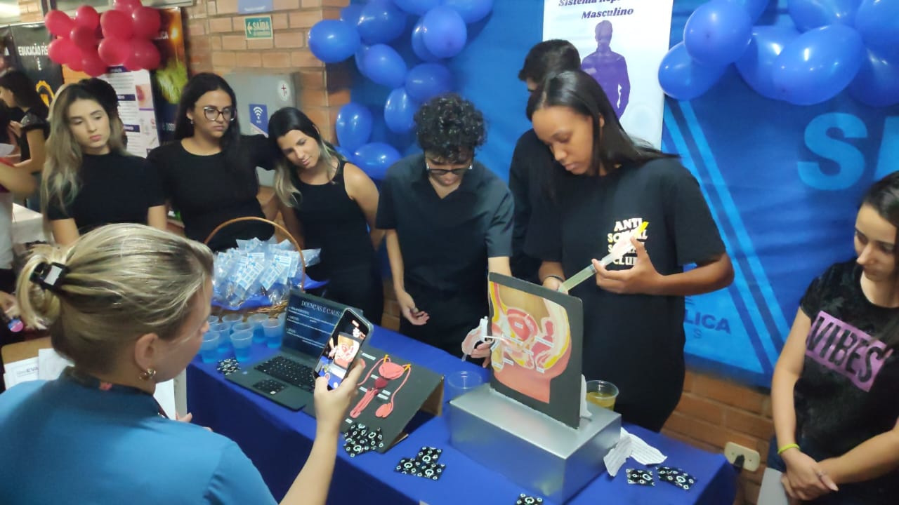 A atividade teve o objetivo de proporcionar uma experiência interdisciplinar e prática aos acadêmicos, que foram divididos em grupos e desenvolveram trabalhos relacionados aos temas de Reprodução Humana, Métodos Contraceptivos e Preventivos do SUS, Embriologia e Sistemas Reprodutores feminino e masculino.