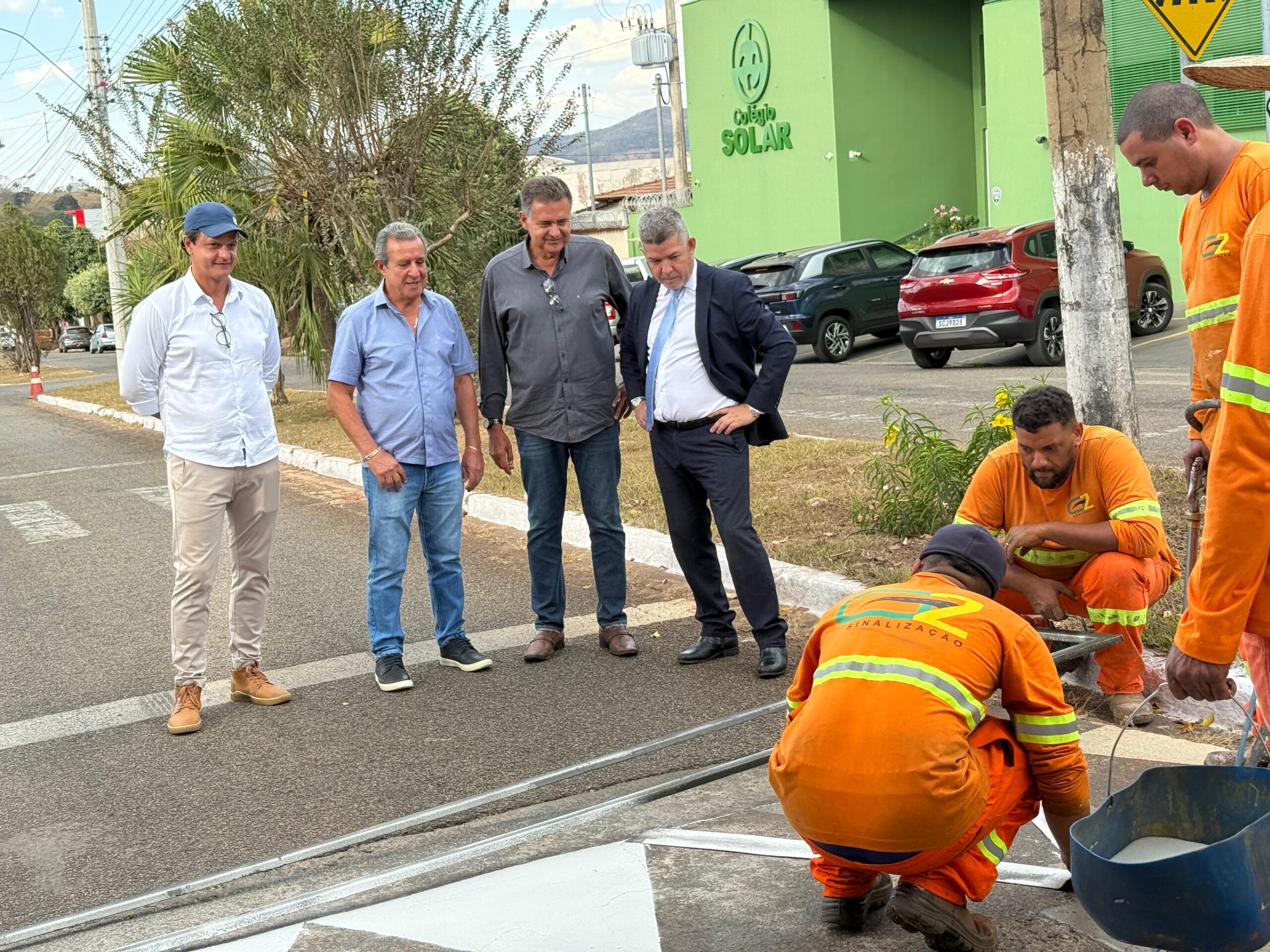 Representando o prefeito Edmario, o vice-prefeito Marcão, junto ao deputado estadual Veter, secretários municipais e a população, acompanhou de perto as ações de reforço da sinalização em diversos pontos da cidade.