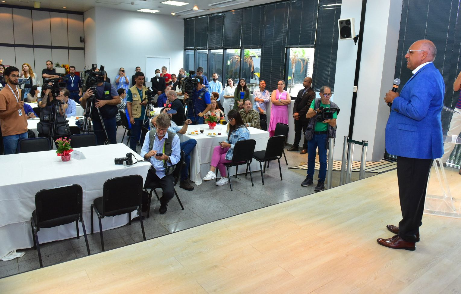 O prefeito Rogério, em café da manhã com a imprensa nesta quarta-feira (20/12), apresentou resultados e conquistas alcançadas em 2023. O gestor apontou avanços da administração em todas as áreas, com destaque para ampliação da rede de drenagem, modernização da iluminação, conclusão de projetos estruturantes, além da implantação de melhorias no transporte público.