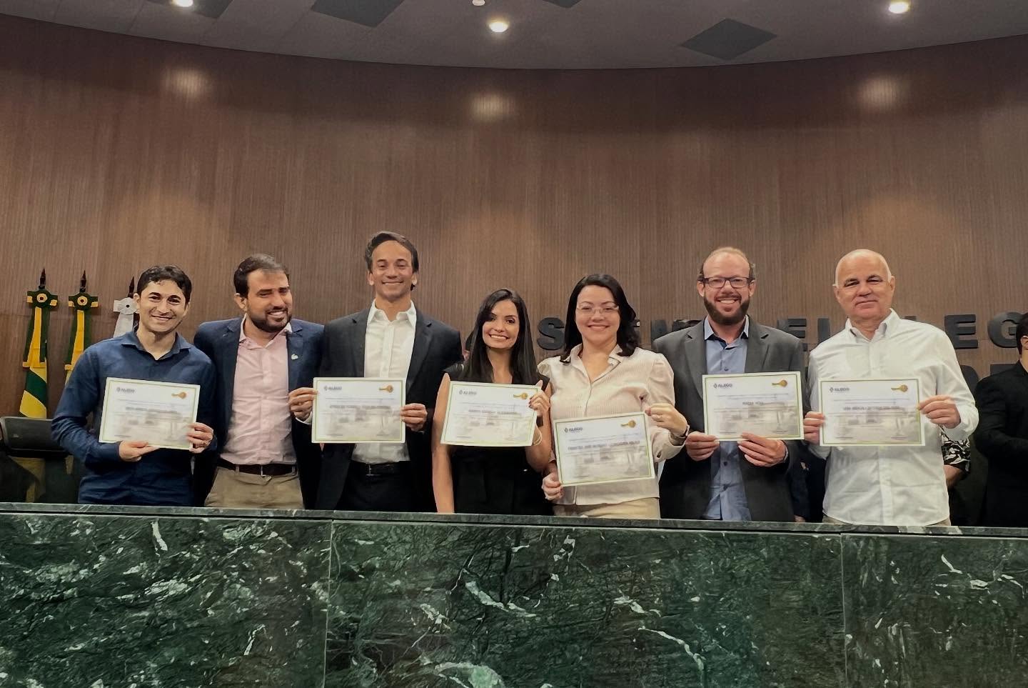 Professor e doutor Henrique Oliveira do Instituto Federal Goiano Campus Ceres, recebendo homenagem da Alego. Fotos: Arquivo pessoal/Redes sociais