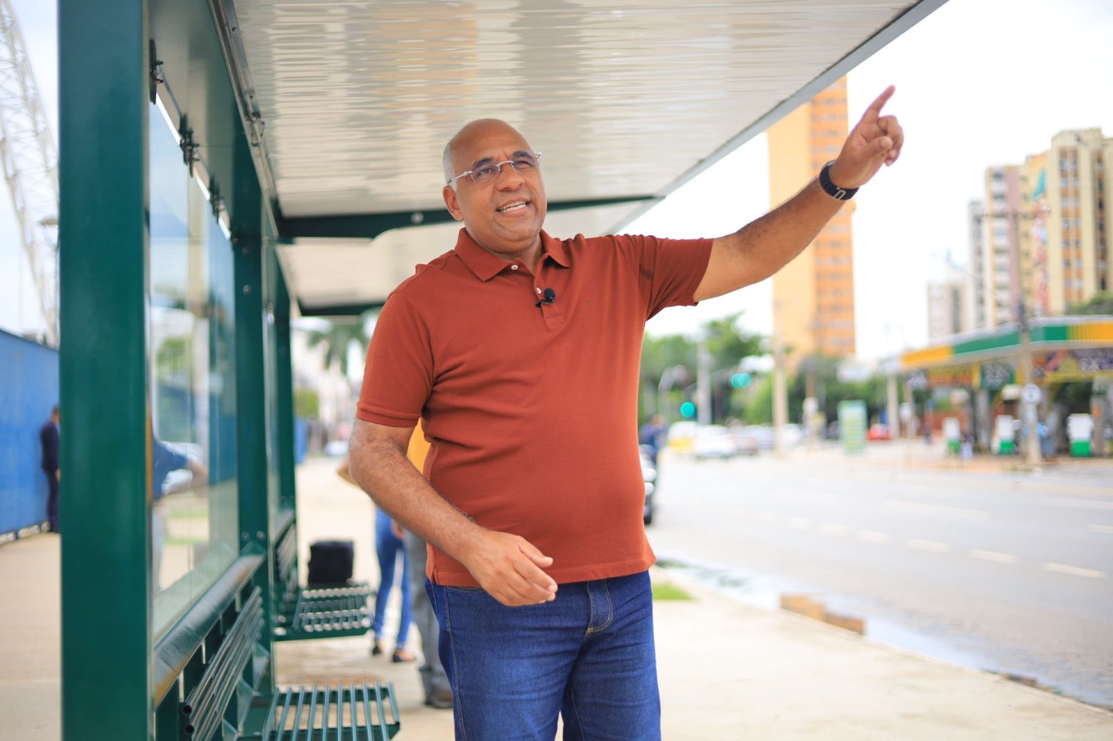 Prefeito Rogério vistoria instalação do primeiro ponto de ônibus do Programa Centraliza