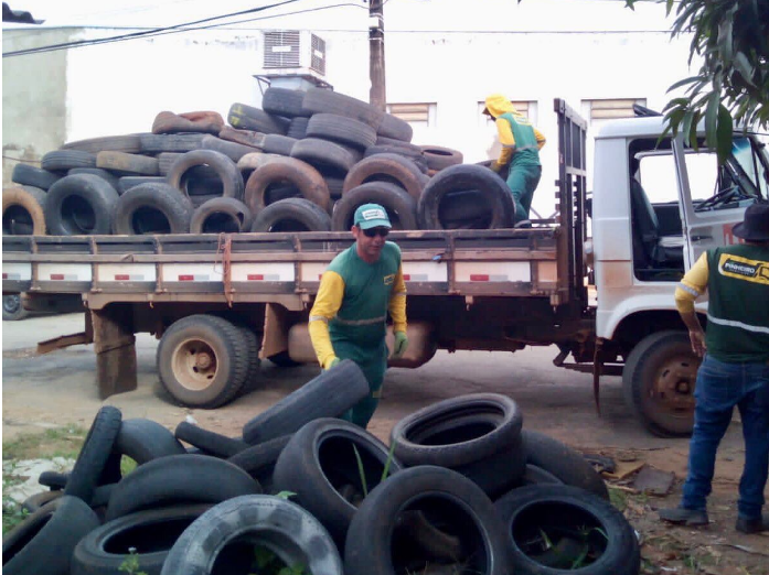 O trabalho das equipes hoje (28/01), foi o de recolhimento de pneus inservíveis em todas as borracharias do município.