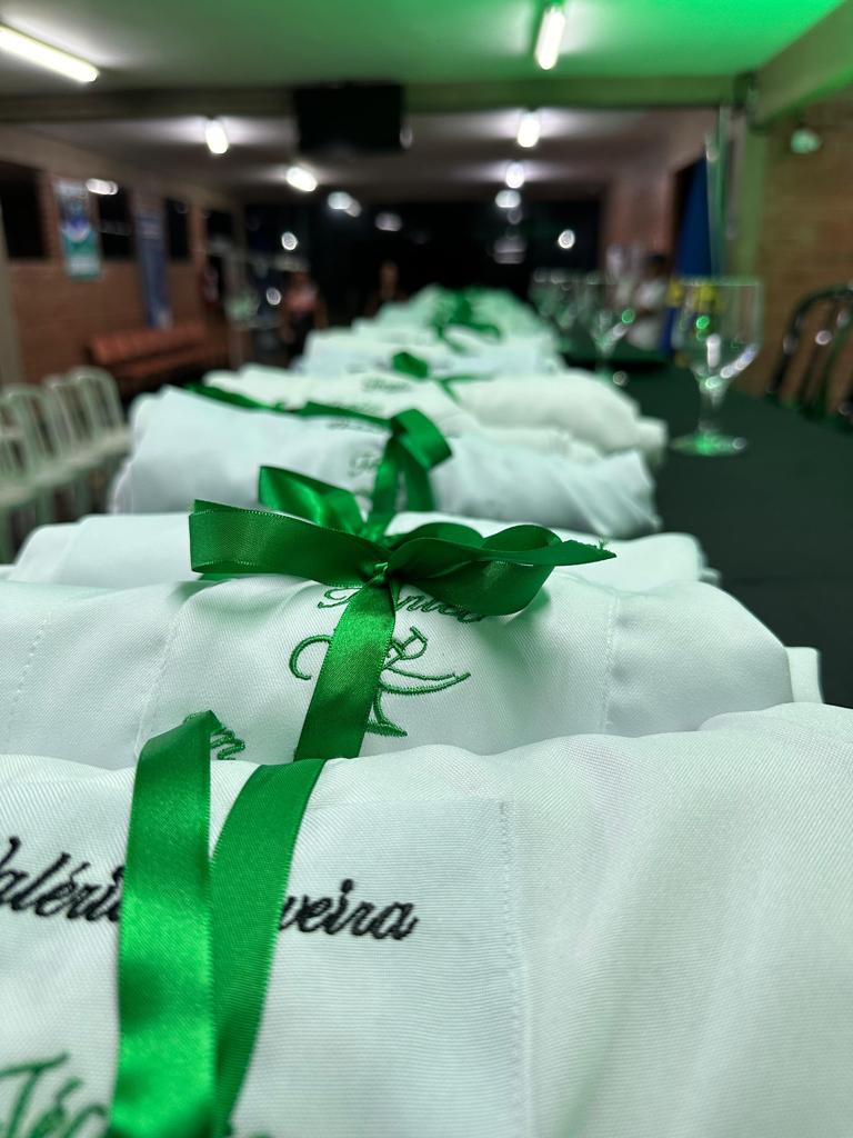 No final do evento, todos subiram ao palco acompanhados de um padrinho e vestiram o jaleco. Momento de muita comemoração e emoção.