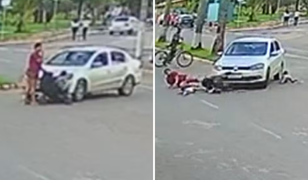Um carro atropelou uma mulher e arremessou os bebês dela em uma rua de Petrolina de Goiás. Um vídeo mostra o momento em que a mãe arrasta um carrinho de bebê com as filhas e, em seguida, é atropelada pelo veículo enquanto aguardava em um canteiro central para atravessar a via.