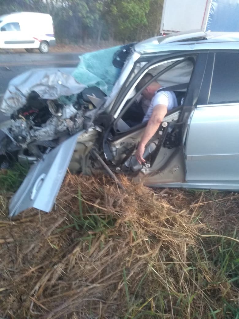 O condutor da carreta não teve ferimentos e permaneceu no local e de acordo com ele, o Cruze teria invadido a pista contrária e provocado o acidente.