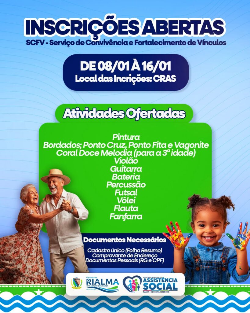 Além da programação recreativa, a Secretaria também realizará, durante o evento, inscrições para o SCFV – Serviço de Convivência e Fortalecimento de Vínculos, oferecendo oportunidades de participação em atividades culturais, esportivas e educativas para diferentes faixas etárias, incluindo o público da terceira idade.