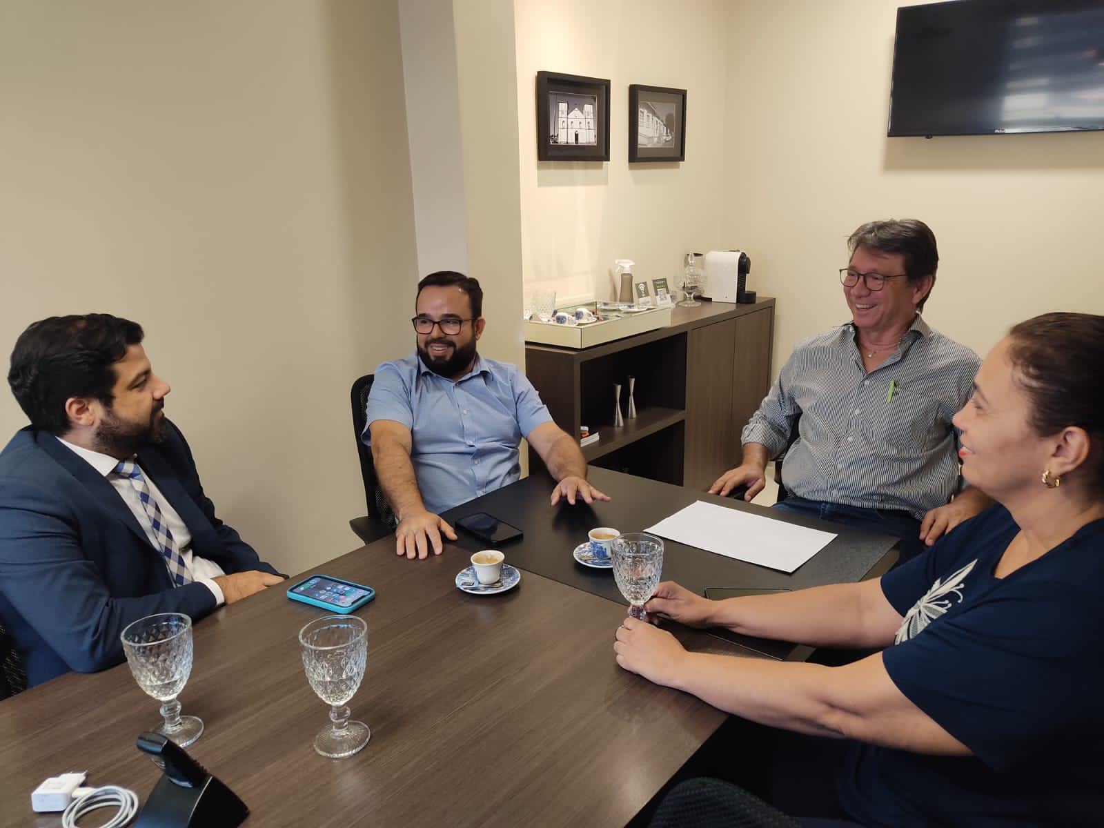 Prefeito de Rialma Fred Vidigal em reunião com Dr. Leandro e Sra. Adriana, o procurador do município Dr. Samuel Balduino. Foto: Divulgação/Assessoria