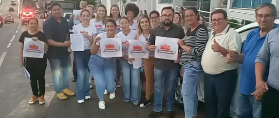 Prefeito Fred, vereadores, servidores do Fórum e empresários de Rialma durante a manisfetação. Foto: Marcelo José de Sá