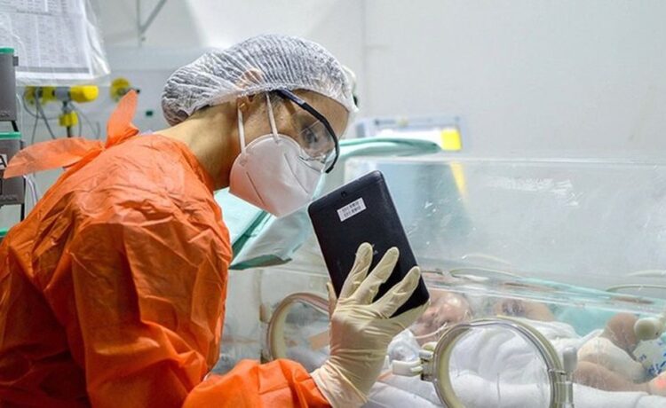 A visita de parentes em UTIs de Covid-19 foi proibida em grande parte dos hospitais lotados do país por causa do cenário de descontrole de infecções. Mesmo quando a epidemia não havia atingido o pico de mortes, as visitas foram restritas porque faltam, nos hospitais públicos, roupas de proteção para que os pais possam visitar os filhos.