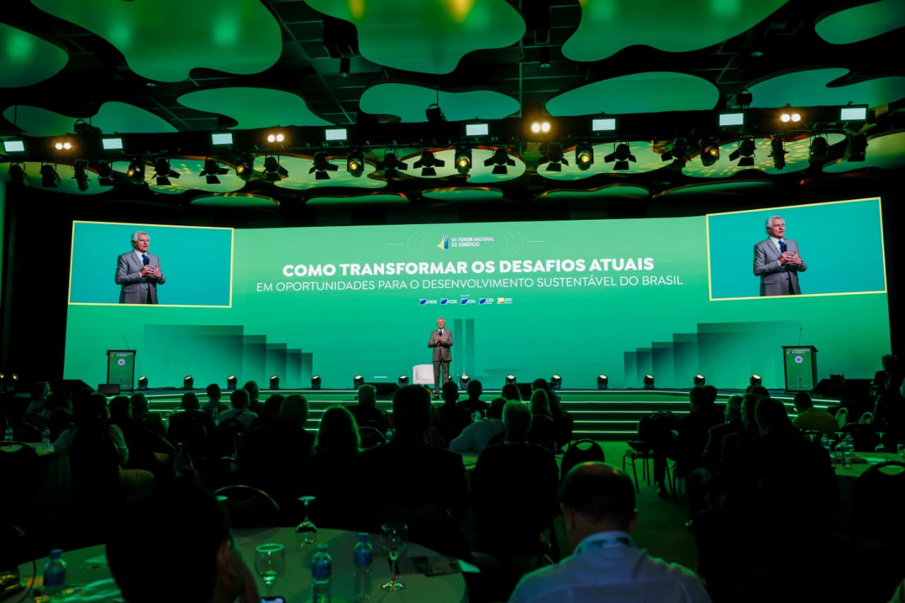 O governador Ronaldo Caiado ressaltou a importância do setor de comércio para o desenvolvimento de Goiás ao abordar governança e política durante o VII Fórum Nacional do Comércio, em Brasília, nesta quarta-feira (22/10). O governador foi palestrante do painel “Como transformar os desafios atuais em oportunidades para o desenvolvimento sustentável do Brasil”, no evento promovido pela Confederação Nacional de Dirigentes Lojistas (CNDL), que reúne empresários, líderes setoriais e autoridades públicas para discutir os desafios e oportunidades do cenário atual do país.