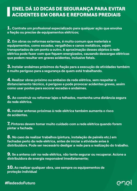 Enel Distribuição Goiás / Dicas de Segurança: ENEL DÁ 10 DICAS DE SEGURANÇA PARA EVITAR ACIDENTES EM OBRAS E REFORMAS PREDIAIS
