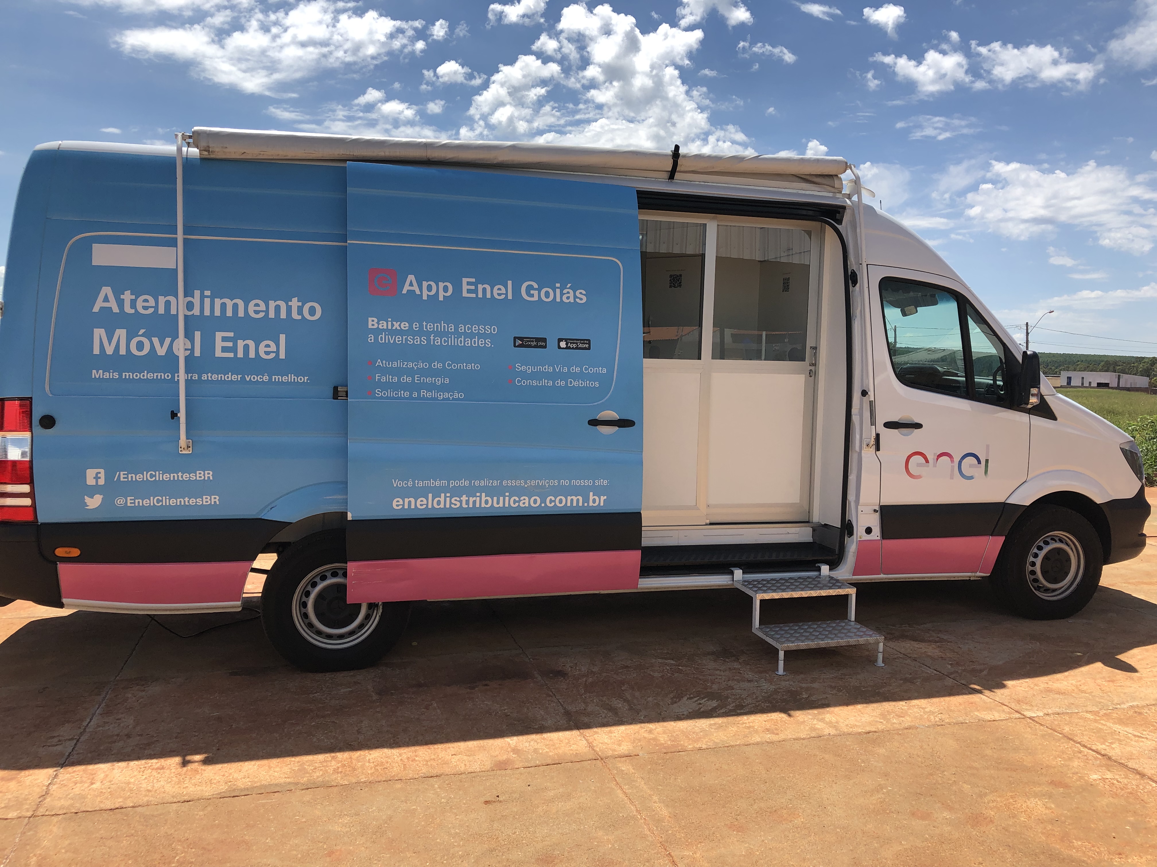A Enel Distribuição Goiás disponibiliza uma loja móvel para reforçar o atendimento aos clientes de Palestina de Goiás até sexta-feira (1°). A ação que tem como objetivo aproximar os clientes da empresa, disponibiliza uma van itinerante na Avenida Bastos, n° 713, Setor Central, das 8h às 16h, para realizar todos os serviços disponíveis nas lojas físicas como: adesões, parcelamentos, religações, negociações de débitos e ligações novas. A empresa já realizou mais de 11,3 mil atendimentos ao cliente por meio das agências de atendimento móvel. O projeto, iniciado em maio de 2018, atendeu clientes de cidades como Anápolis, Aparecida de Goiânia, Catalão, Goiânia, Luziânia, Pirenópolis, Senador Canedo e Trindade.