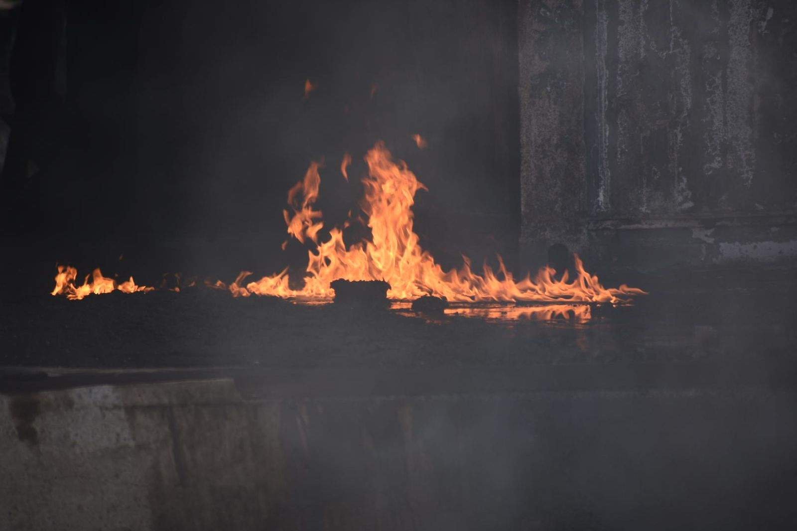 A área em que as chamas ainda queimam conta com diversos materiais inflamáveis. Segundo o Corpo de Bombeiros, é necessário deixar que todo o material seja consumido.