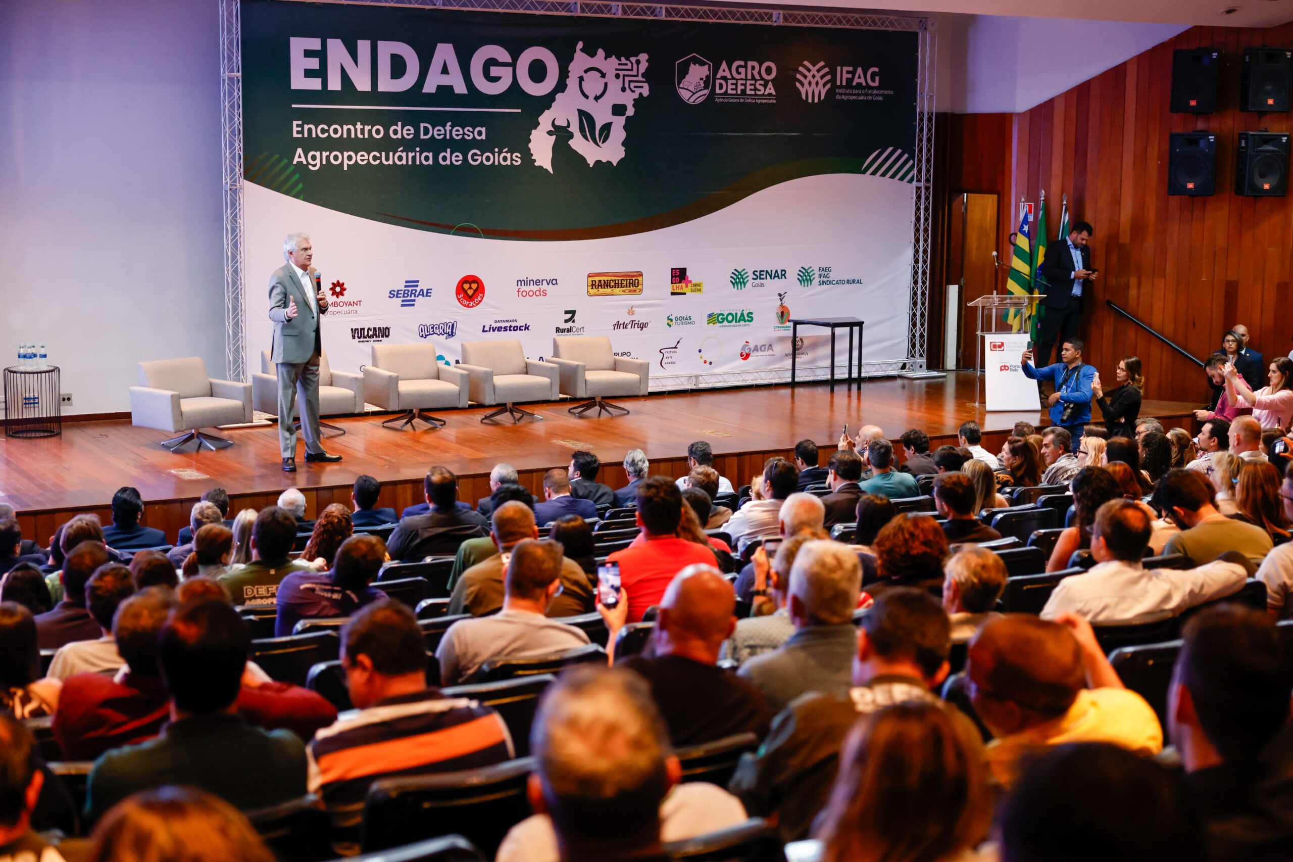 O governador Ronaldo Caiado comemorou, nesta terça-feira (3/6), o reconhecimento internacional de Goiás como zona livre de febre aftosa sem vacinação. O pronunciamento ocorreu durante o Encontro de Defesa Agropecuária de Goiás (Endago), que segue até o dia 5 de junho, no Centro de Convenções de Goiânia. O evento é uma iniciativa da Agência Goiana de Defesa Agropecuária (Agrodefesa) e acontece na semana em que se comemora o Dia Estadual do Servidor da Defesa Agropecuária (6 de junho).