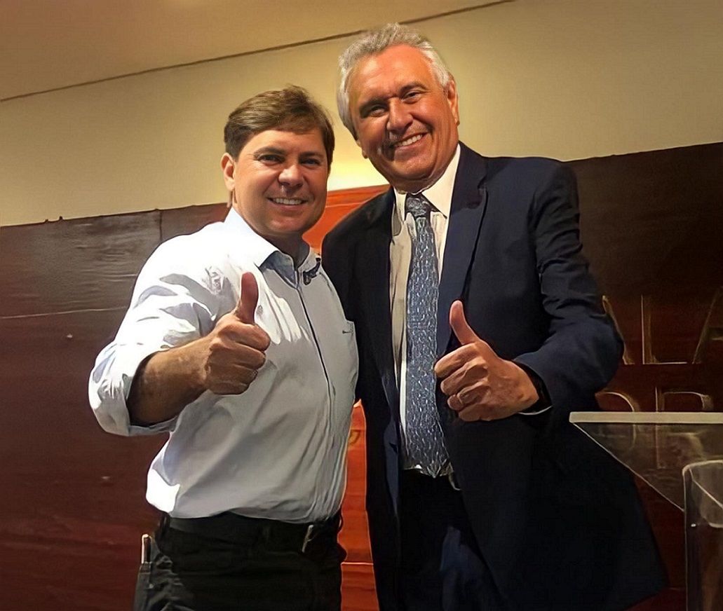 Deputado Bruno Peixoto com o governador Ronaldo Caiado: “Temos muitos projetos para a Assembleia Legislativa de Goiás, mas todos de mãos dadas com o governo do Estado” // Fotos: Divulgação/Junior Guimarães