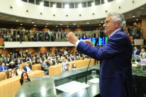 O governador Ronaldo Caiado participou nesta sexta-feira (18/08), na Assembleia Legislativa de Goiás (Alego), em Goiânia, da sessão solene extraordinária que concedeu o Título Honorífico de Cidadania Goiana ao ex-presidente do Brasil Jair Messias Bolsonaro. “É uma honraria que impõe muito mais deveres do que direitos. Até porque nós nos orgulhamos de nossa terra e, ao fazermos a deferência de reconhecer os serviços prestados de um presidente, é porque eles realmente aconteceram”, reconheceu o governador.