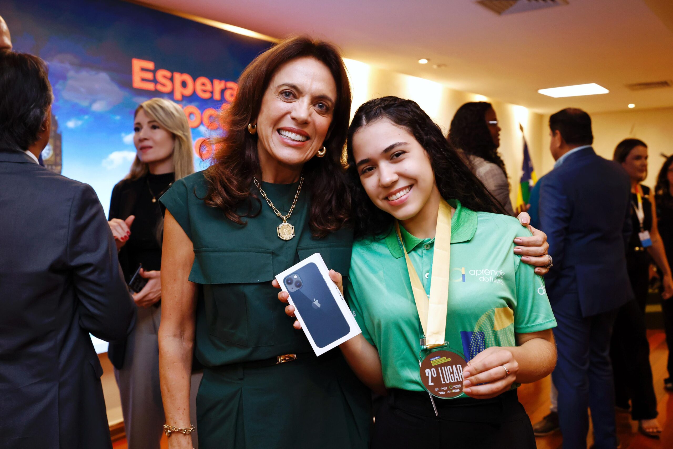 A coordenadora do Goiás Social, primeira-dama Gracinha Caiado, entregou a premiação aos integrantes do Aprendiz do Futuro vencedores do Desafio Aprendizes da Matemática, nesta quarta-feira (24/9), no Palácio das Esmeraldas. Os estudantes que ocuparam as 12 primeiras posições foram premiados com medalhas de ouro, um smartphone e intercâmbio cultural para Londres. “A dedicação, a determinação, a disciplina são virtude daqueles que lutam e conseguem sempre alcançar os voos mais altos. E essa qualidade que eu vejo claramente em cada um de vocês”, ressaltou ao parabenizar os jovens.