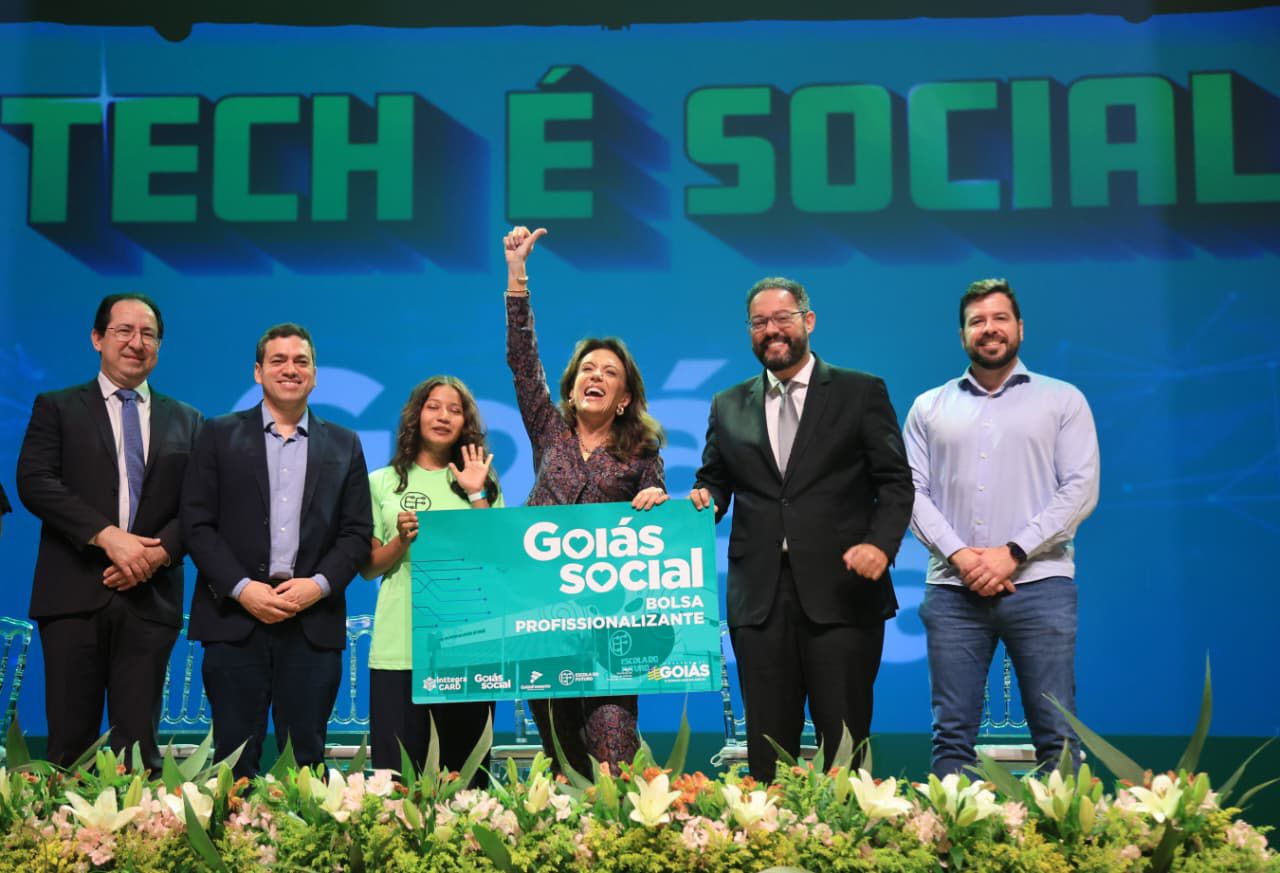 A coordenadora do Goiás Social, primeira-dama Gracinha Caiado, realizou a entrega de 4.254 cartões do Bolsa Profissionalizante e do Crédito Social Tech nesta quarta-feira (24/9), no Teatro Escola Basileu França em Goiânia. Os novos programas do Goiás Social, geridos pela Secretaria de Estado de Ciência, Tecnologia e Inovação (Secti), atendem pessoas em situação de vulnerabilidade social com oportunidades de qualificação profissional e incentivo ao empreendedorismo na área da tecnologia. Durante a solenidade, que teve a presença de 630 beneficiários, a primeira-dama defendeu a visão de que “a tecnologia também pode ser social”.