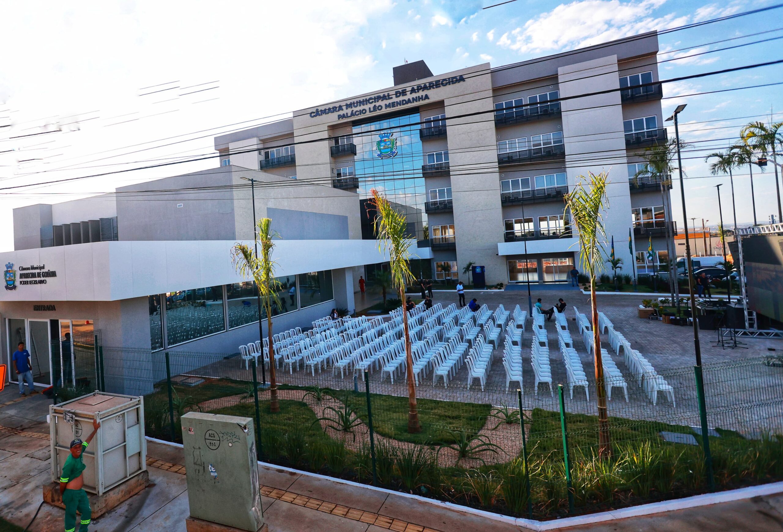 O governador em exercício Daniel Vilela e o presidente da Câmara de Vereadores de Aparecida de Goiânia, André Fortaleza, inauguraram na noite de segunda-feira (24/06) a nova sede do Poder Legislativo municipal. O local leva o nome de Palácio Léo Mendanha, uma homenagem ao ex-vereador, ex-deputado estadual e pai do ex-prefeito da cidade, Gustavo Mendanha.